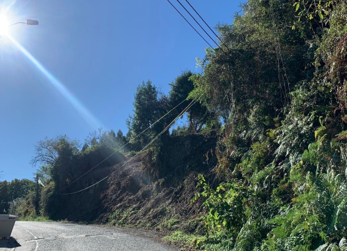 A veciñanza xa advertira da presenza de cableado desprendido, situación empeorada pola necesidade de desbroce do terreo colindante e, no mesmo punto os restos dunha construcción con perigo de desprendemento sobre a vía pública.
