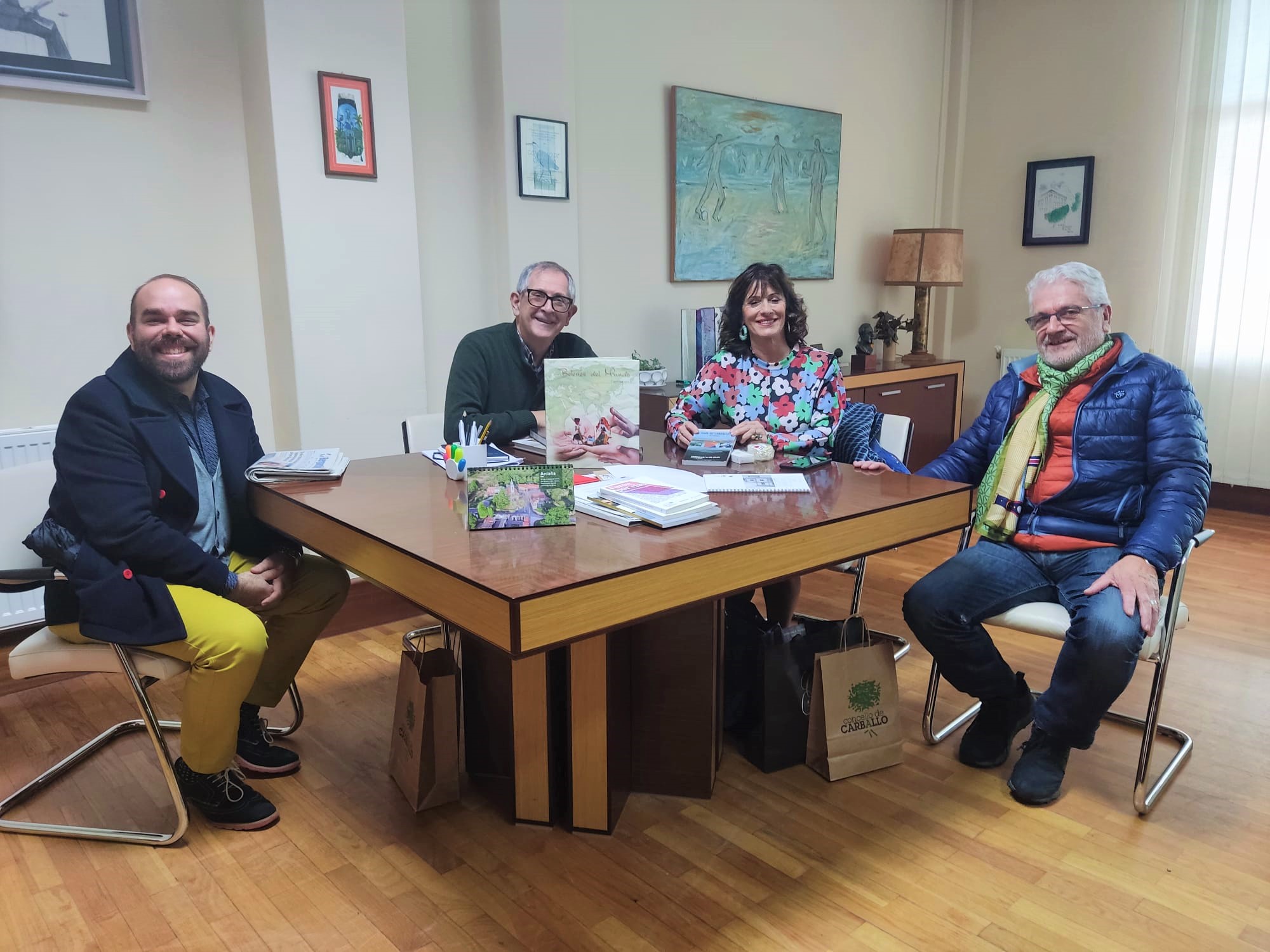 Teresa Lafragua e Xabier Santxotena, promotores da mostra, e o belenista Ángel Peña mantiveron hoxe unha xuntanza co alcalde