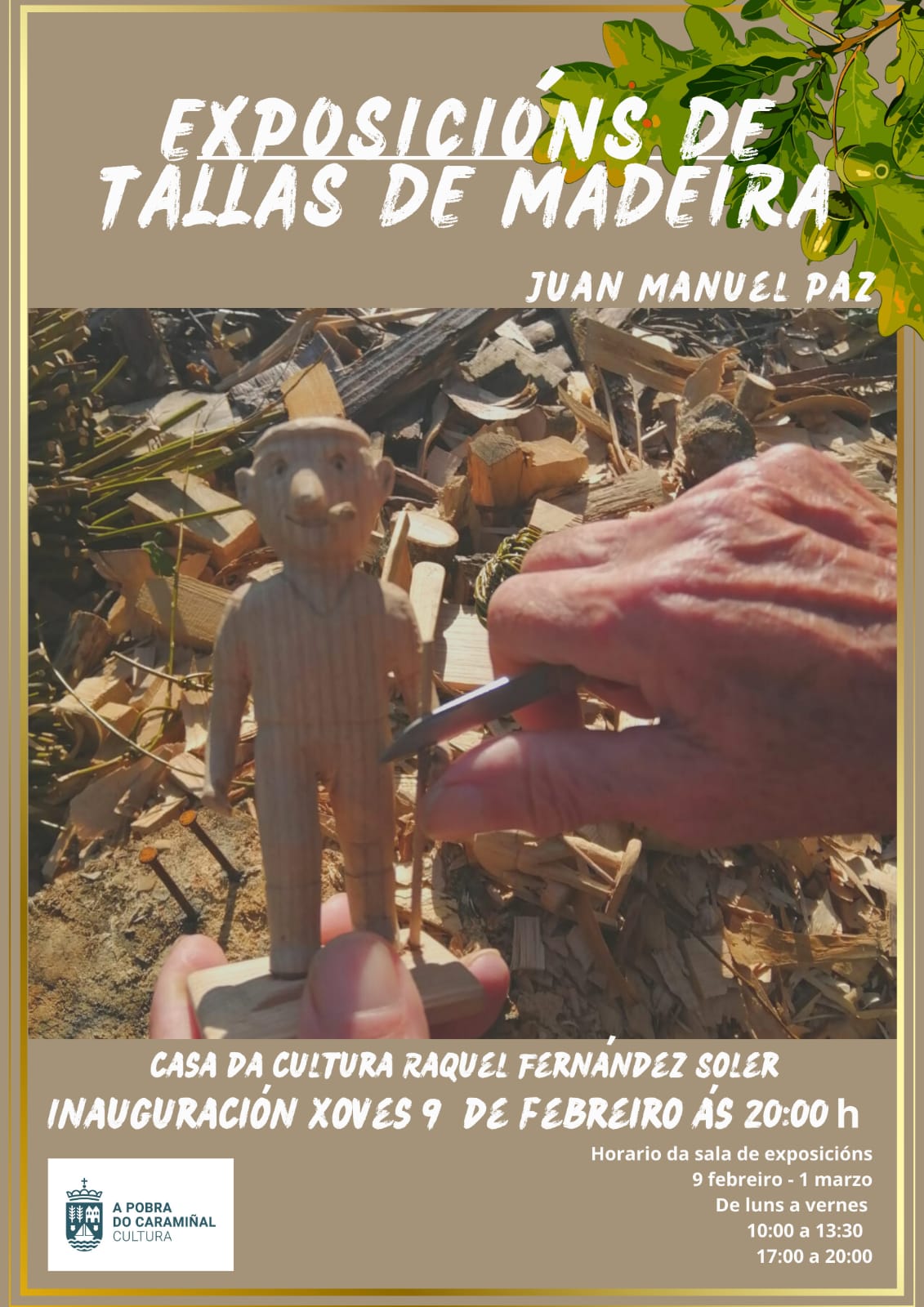 A casa da cultura Raquel Fernández Soler acubillará unha nova exposición. Nesta ocasión, será de tallas de madeira elaboradas por Juan Manuel Paz.