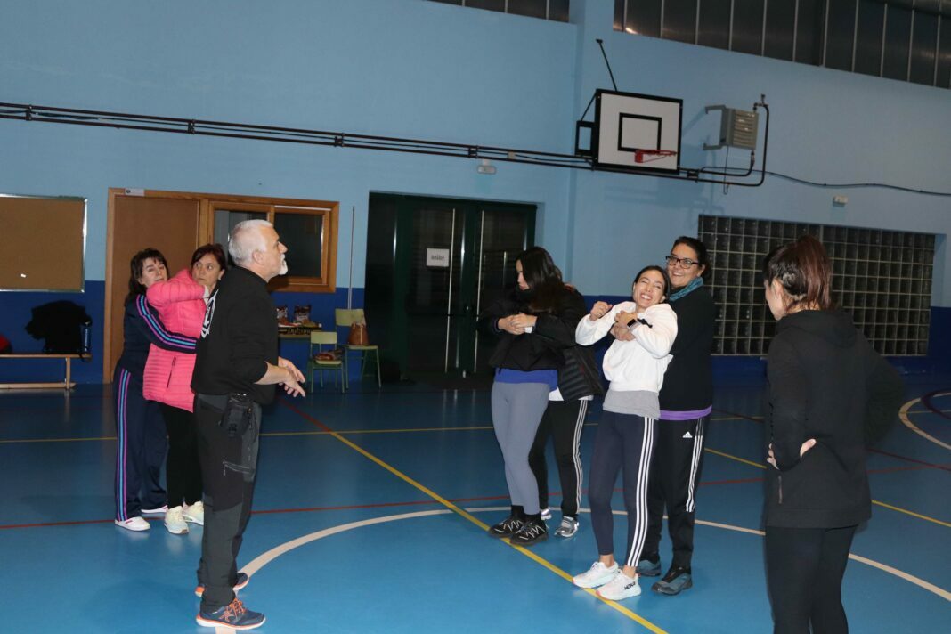 Durante as tres horas seguintes, as alumnas practicaron entre elas distintas técnicas de bloqueo e, sobre todo, de como librarse dos distintos agarres. Dende golpes sinxelos a man aberta, denominados “latiguilllos”, ata “canillazos” (patadas nas canillas) ou como golpear co puño. A anécdota da xornada tivo lugar cando o monitor indicou que o movemento para librar o pulso era o tradicional “dar cera, pulir cera”, en referencia ao filme “Karate Kid”. Porén, a referencia cinematográfica non foi collida por ningunha alumna.