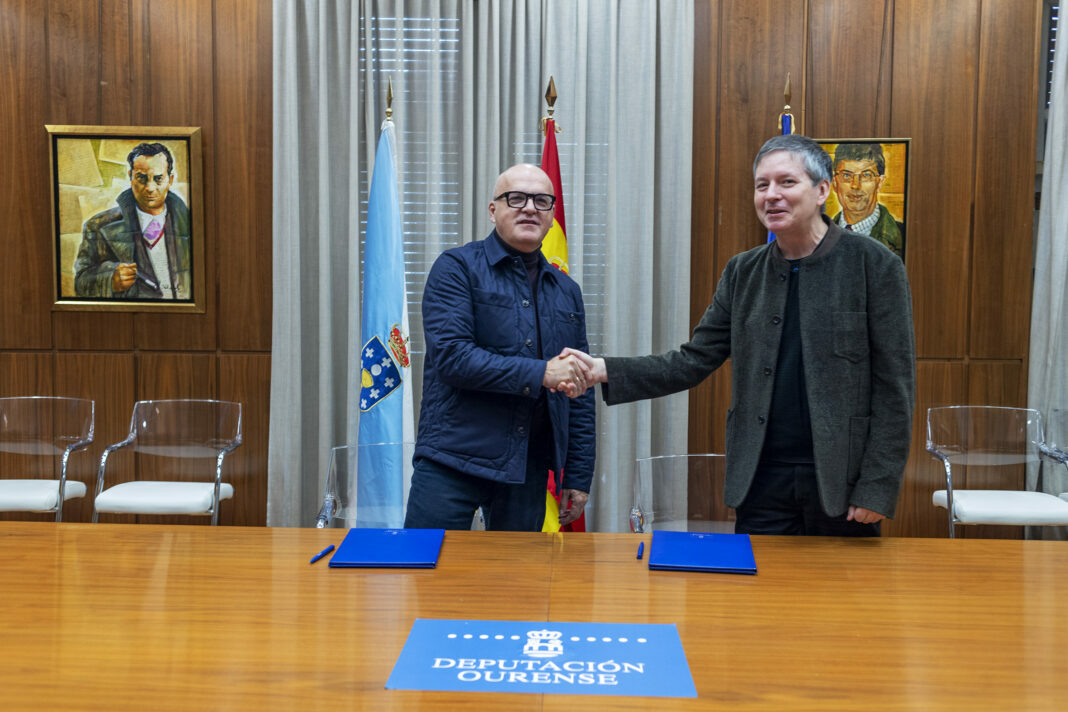 O presidente da Deputación, Manuel Baltar, e o vicepresidente do Cineclube, José Manuel Rodríguez, asinaron no Pazo Provincial un convenio que permitirá ofrecer unha programación estable de películas que non se estreen nas salas comerciais
