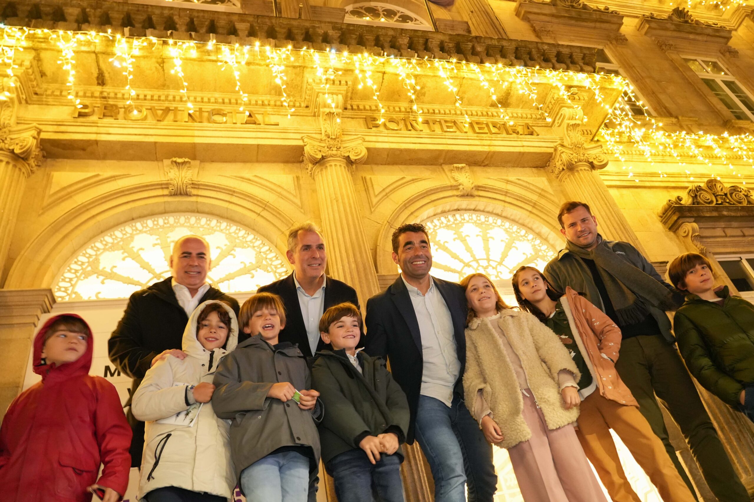 O presidente da Deputación de Pontevedra, Luis López, acende o Nadal na provincia de Pontevedra cunha chocolatada aberta a toda a veciñanza no Pazo provincial que sirve como punto de partida a unha ampla programación de Nadal repartida por concellos de toda a provincia e deseñada para todos os membros da familia. Unhas festas que este ano levan por lema “Un Nadal que saia do noso interior” e que marca a decoración, integrada por especies vexetais autóctonas da provincia, do Pazo provincial e os demais edificios provinciais. “Queremos lembrar a importancia do noso interior xeográfico, dos nosos montes, tan afectados este verán polos lumes; e queremos remarcar que o mellor de nós, o noso estilo de vida familiar e o noso carácter acolledor, levámolo no interior”, declarou o mandatario provincial antes de premer o botón de acendido do alumeado de Nadal do Pazo provincial.