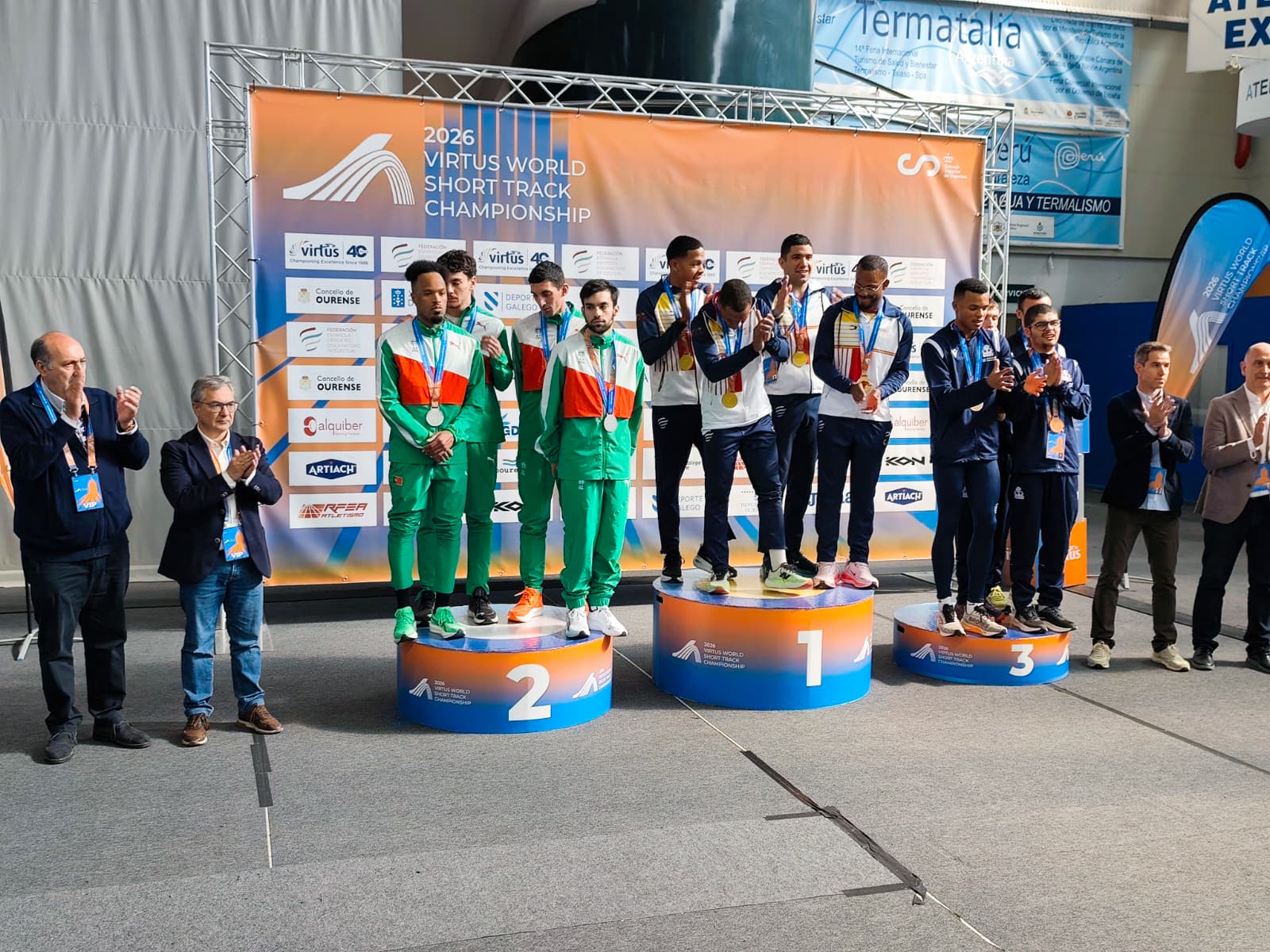 O presidente da Deputación de Ourense, Luis Menor, participou na entrega de medallas do Campionato do Mundo de Atletismo en Pista Corta VIRTUS 2026, celebrado na pista cuberta de Expourense, unha cita internacional que reúne na provincia a deportistas con discapacidade intelectual chegados de diferentes países.