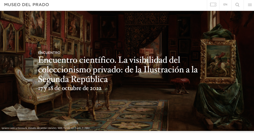 O congreso “La visibilidad del coleccionismo privado: de la Ilustración a la Segunda República” celébrase hoxe e mañá no Museo del Prado. Está dirixido por José Antonio Vigara Zafra e Pedro J. Martínez Plaza, coa secretaría académica de Whitney Dennis e conta con ponencias de expertos internacionais de primeiro nivel.