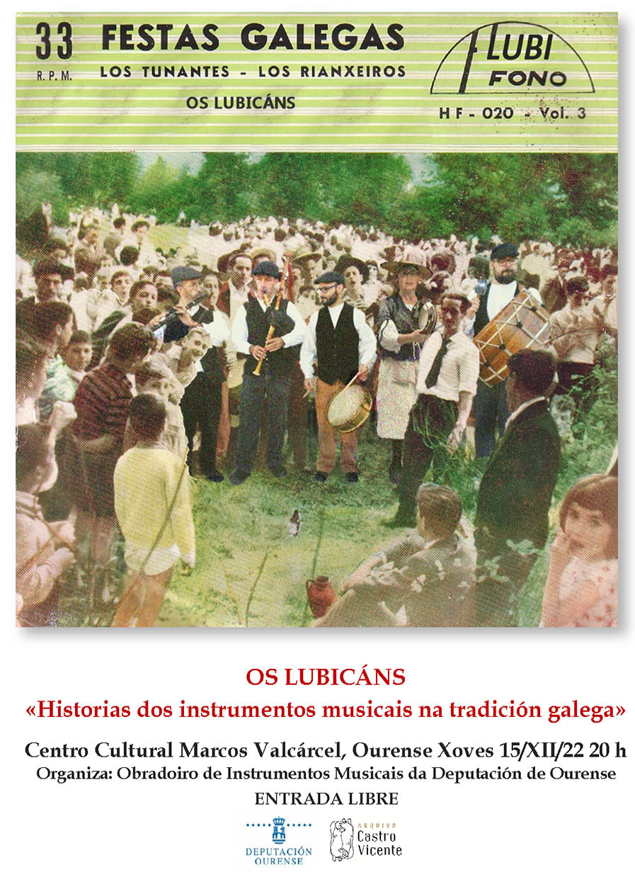 En “Historias dos instrumentos musicais na tradición galega”, os Lubicáns ofrecerán unha repertorio bailable instrumental galego -muiñeiras, xotas, valses, pasodobres, polcas…-, recollidos principalmente na Limia polo Arquivo Castro Vicente durante os últimos trinta anos, e tamén aprendidos de referentes da música tradicional ourensá como Faustino Santalices, Modesto Sánchez, Ermelinda do Muíño, Faustino Luis Seoane ou Paco de Escornabois.