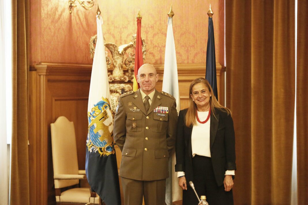 A presidenta provincial, Carmela Silva, puxo hoxe en valor o papel da Brilat de Pontevedra a nivel estatal e internacional na recepción ofrecida hoxe no Pazo Provincial ao xeneral xefe Alfonso Pardo de Santayana Galbis, que vén de tomar posesión do seu cargo ao fronte da Brigada Galicia VII con base en Figueirido. “Somos moi conscientes –sinalou Carmela Silva- do papel que xogan as forzas e corpos de seguridade do Estado e particularmente esta Brigada Galicia VII, que co seu traballo sitúa a España como un país comprometido non só coa seguridade interior e as demandas dunha sociedade democrática, senón co apoio a calquera país do mundo que nos necesite. Somos unha referencia no mundo, a xente respéctanos, témolo gañado e onde estamos convertémonos en persoal exemplar, o que é e moi positivo para a imaxe de España, tendo en conta as situacións tan complexas que estamos a vivir internacionalmente”. A presidenta provincial, que estivo acompañada do deputado Carlos Font, amosou a total colaboración da Deputación para seguir estreitando a relación institucional coa Brilat, e destacou que a brigada “forma parte dos proxectos que se están a desenvolver dende a OTAN”. Tamén quixo recoñecer o seu labor na provincia, entre outras cuestións “o fundamental papel de vixilancia” contra os incendios a través da operación Centinela.