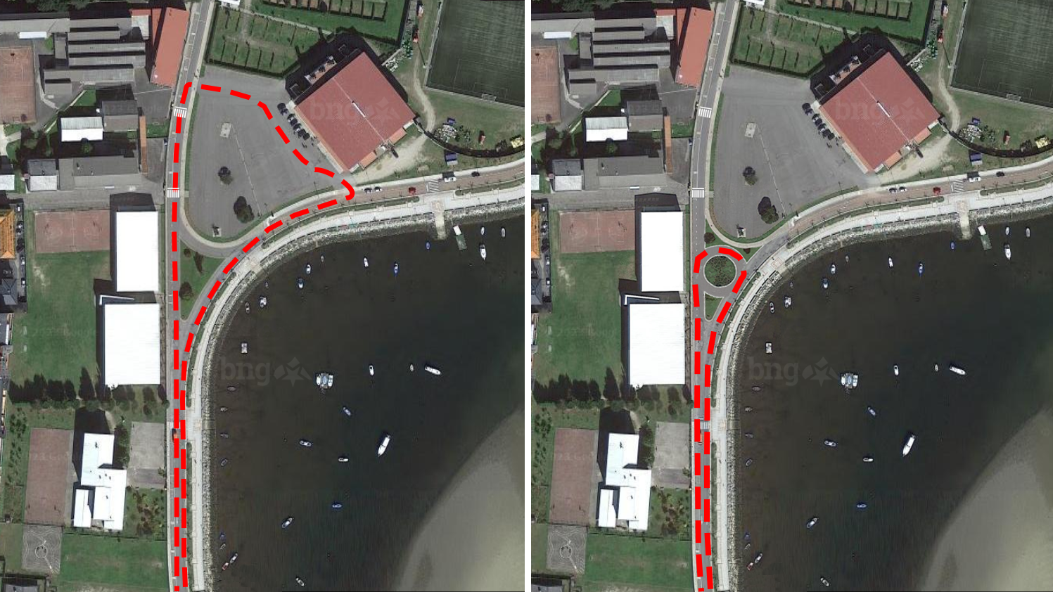 Míriam Bermúdez, a concelleira do BNG, incide en que a día de hoxe, para poder facer un cambio de sentido na zona do Pavillón Municipal cóntase con dúas posiblidades: dar toda a volta polo paseo marítimo ou atravesar o aparcamento do pavillón, esquivando outros vehículos e sin un paso e accesos claros.