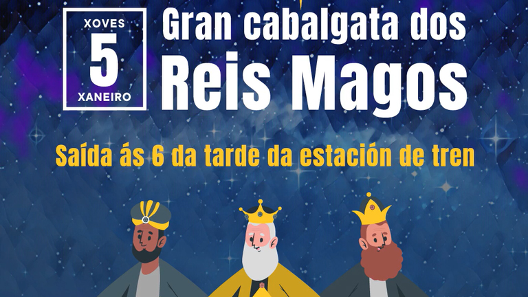 A Cabalgata irá precedida dun avance de animación, formado por dúas charangas e bailaríns, que amenizarán a espera do público, uns 15 minutos antes do paso da comitiva, que avanzará por esta orde:
