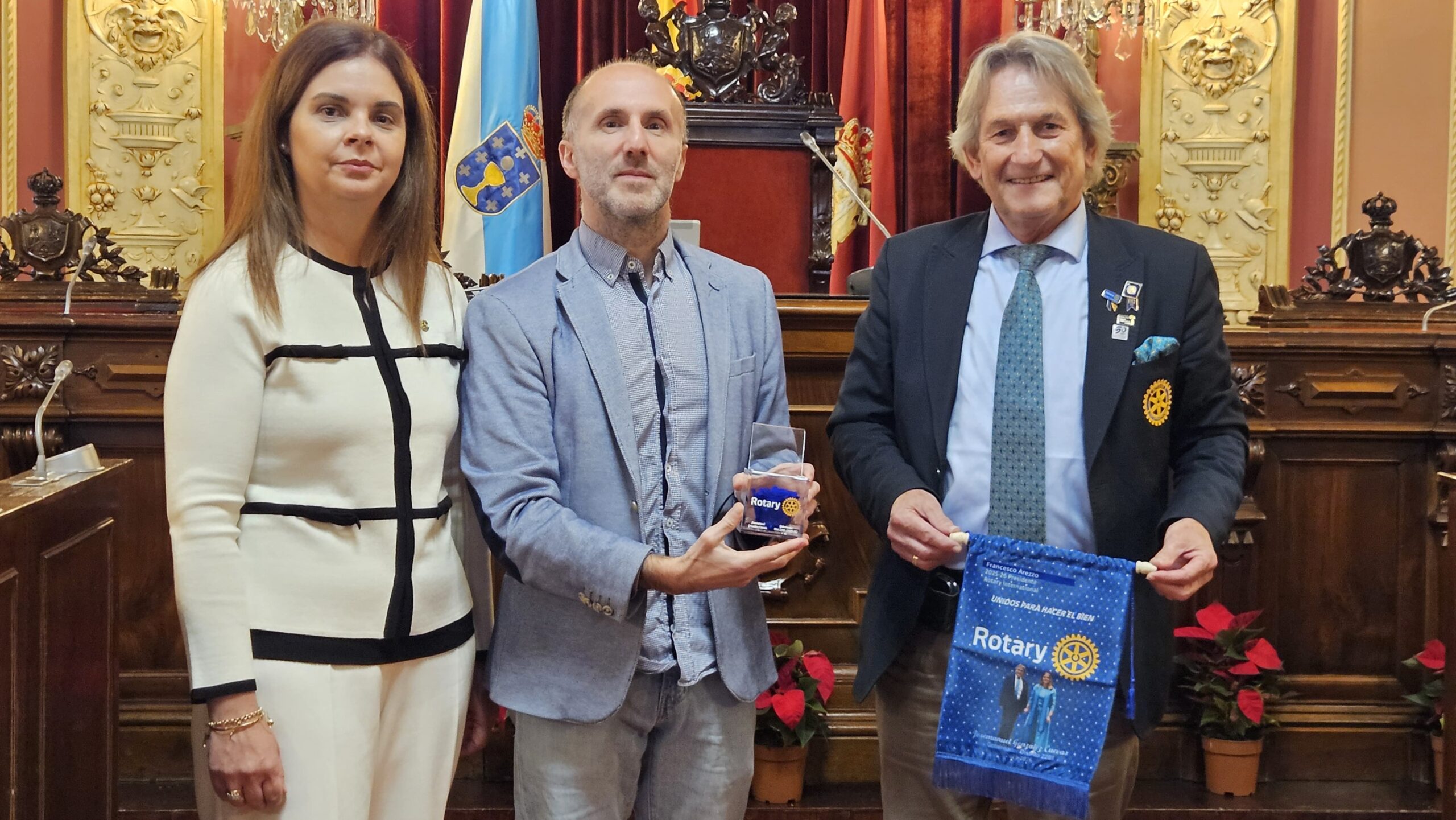 O alcalde de Ourense, Gonzalo Pérez Jácome, recibiu esta mañá no salón de plenos a José Manuel González Cuevas, gobernador do distrito 2201 de Rotary en España e a Maricruz Fernández, presidenta de Rotary Ourense.