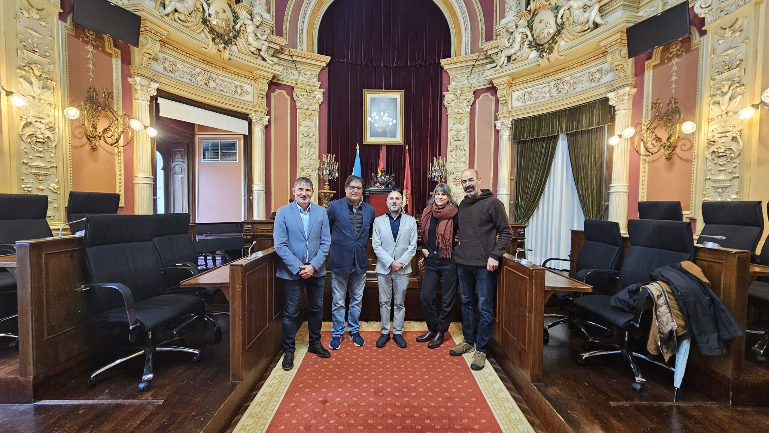 O alcalde de Ourense, Gonzalo Pérez Jácome, e o tenente de alcalde, Aníbal Pereira, recibiron esta mañá na Casa do Concello o presidente da Federación Española de Deportes de Montaña e Escalada (FEDME), Joan Bernat Clarella Biarge, o presidente do club Asociación de Escaladores Ourensáns Asesou, Alfonso Böck Villalva e a secretaria-tesoureira da entidade ourensá Blanca García Domínguez.