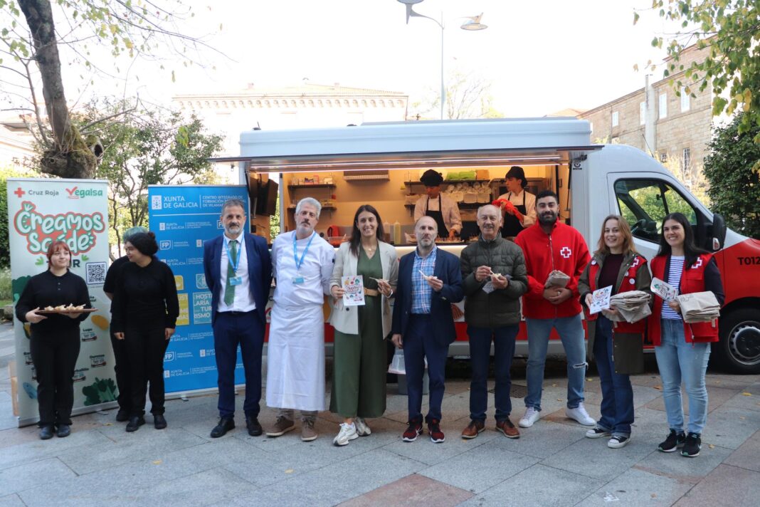 A bordo da food truck, profesionais e alumnado do CIFP Vilamarín compartiron xunto ao voluntariado e persoal técnico de Cruz Vermella os principais detalles esenciais para pór en práctica unha alimentación saudable desde os 65 anos.