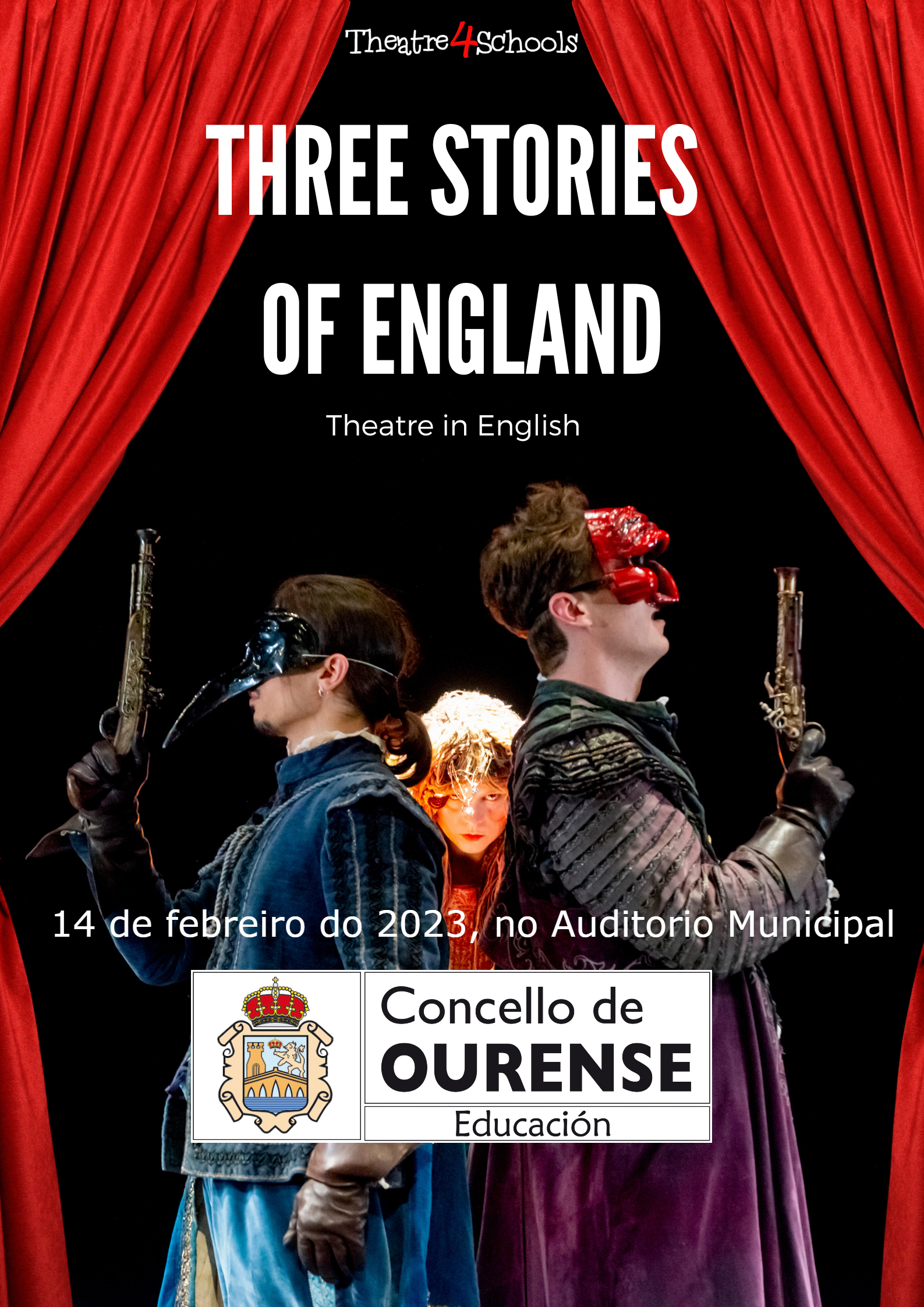 O Concello de Ourense retoma a actividade de teatro en lingua inglesa para o alumnado de Educación Secundaria dos centros de ensino da cidade coa obra Three stories of England. Tres historias curtas que rondan os quince minutos ambientadas na Inglaterra do século XVI: un drama, unha comedia e un conflito moral dos que Shakespeare e a raíña Elizabeth, entre outros, forman parte.