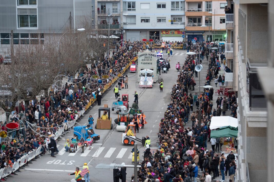 En carrozas as gañadoras foron “Pouca Corrente” da Asociación Carnavales de Mañufe co primeiro premio, “Picoñasa” da Asociación En Loureiro coma sempre” co segundo, “2023 Odiesa Tudense” da Charanga Cantos Somos co terceiro, “Egypto” da Asociación Cultural de Pontellas co cuarto, “Hindús” da Asociación Pandilla” co quinto, e por último “Xeada en Parada” da Asociación Cultural Parada do Miñor levou o sexto premio.