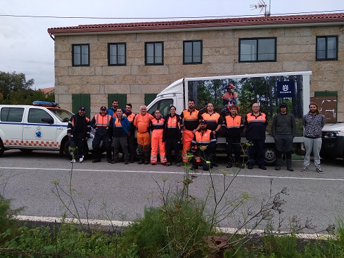 Membros de Protección Civil de Galicia participan en Borela, no concello de Cerdedo-Cotobade, nun curso de motoserristas promovido pola Xunta para instruir aos voluntarios en situacións de emerxencia nas que se faga necesario o uso desta ferramenta mecánica.