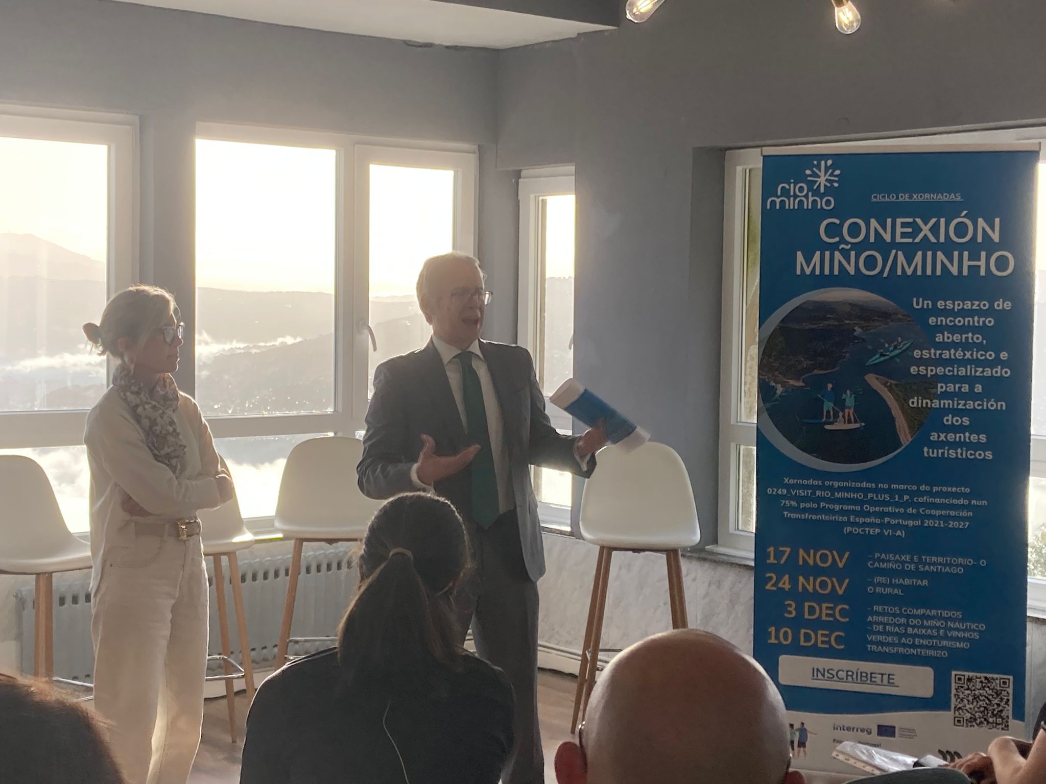 A Deputación de Pontevedra desenvolveu na Guarda a xornada “Retos compartidos arredor do Miño Náutico” no marco do proxecto VISIT RIO MINHO PLUS, cofinanciado nun 75% polo Programa Operativo de Cooperación Transfronteiriza España-Portugal 2021-2027. Na sesión, que foi inaugurada polo alcalde da Guarda e deputado provincial, Roberto Carrera, e a directora de Turismo, Romina Fernández, reflexionouse sobre a xestión integral do río como recurso compartido e analizáronse os proxectos actuais e as oportunidades para dinamizar o turismo de forma responsable e coordinada na fronteira.