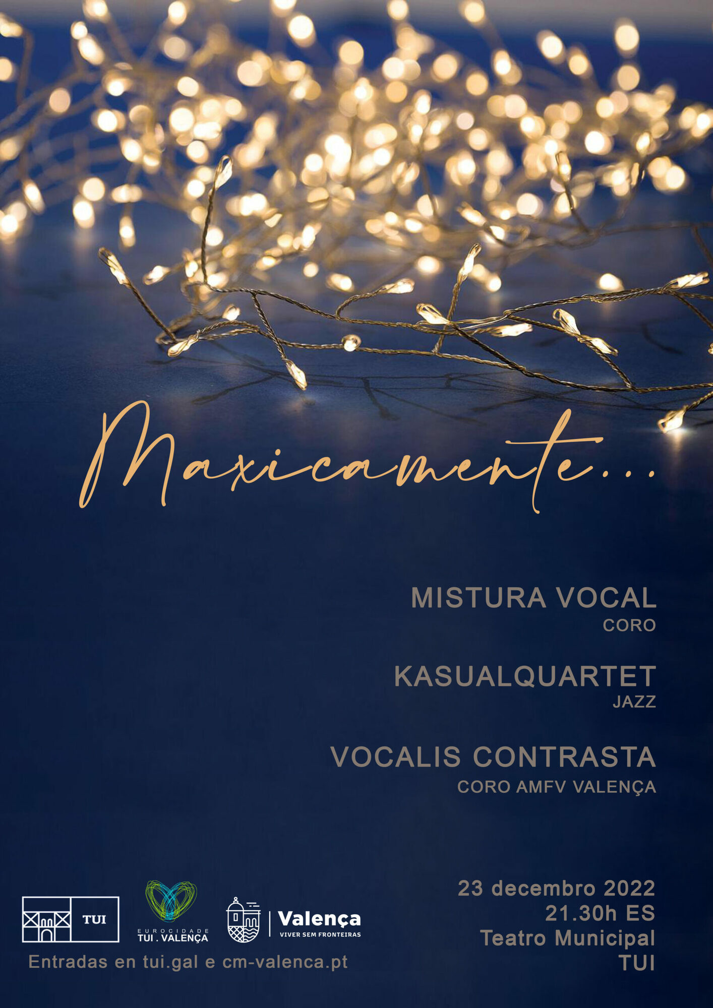 A Eurocidade Tui-Valença celebrará o Nadal cun concerto no que volve tender pontes musicais entre os dous municipios. Nesta ocasión será o venres, 23 de decembro, ás 21.30 h ES, no Teatro Municipal, nun evento musical titulado “Maxicamente” no que se propón unha viaxe musical na procura da maxia de todos levamos dentro.