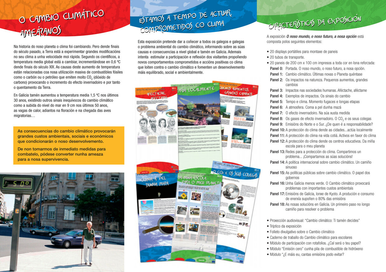 Tamén cabe dicir que a temática do cambio climático é complexa, e como consecuencia hai un gran descoñecemento sobre el por parte da cidadanía. Con esta exposición preténdese dar a coñecer a todos os galegos e galegas o problema ambiental do cambio climático, informando sobre as súas causas e consecuencias a nivel global e tamén en Galicia. Ademais tenta estimular a participación e reflexión dos visitantes propoñendo novos comportamentos comprometidos e accións positivas co clima que loiten contra o cambio climático e fomenten un desenvolvemento máis equilibrado, social e ambientalmente.