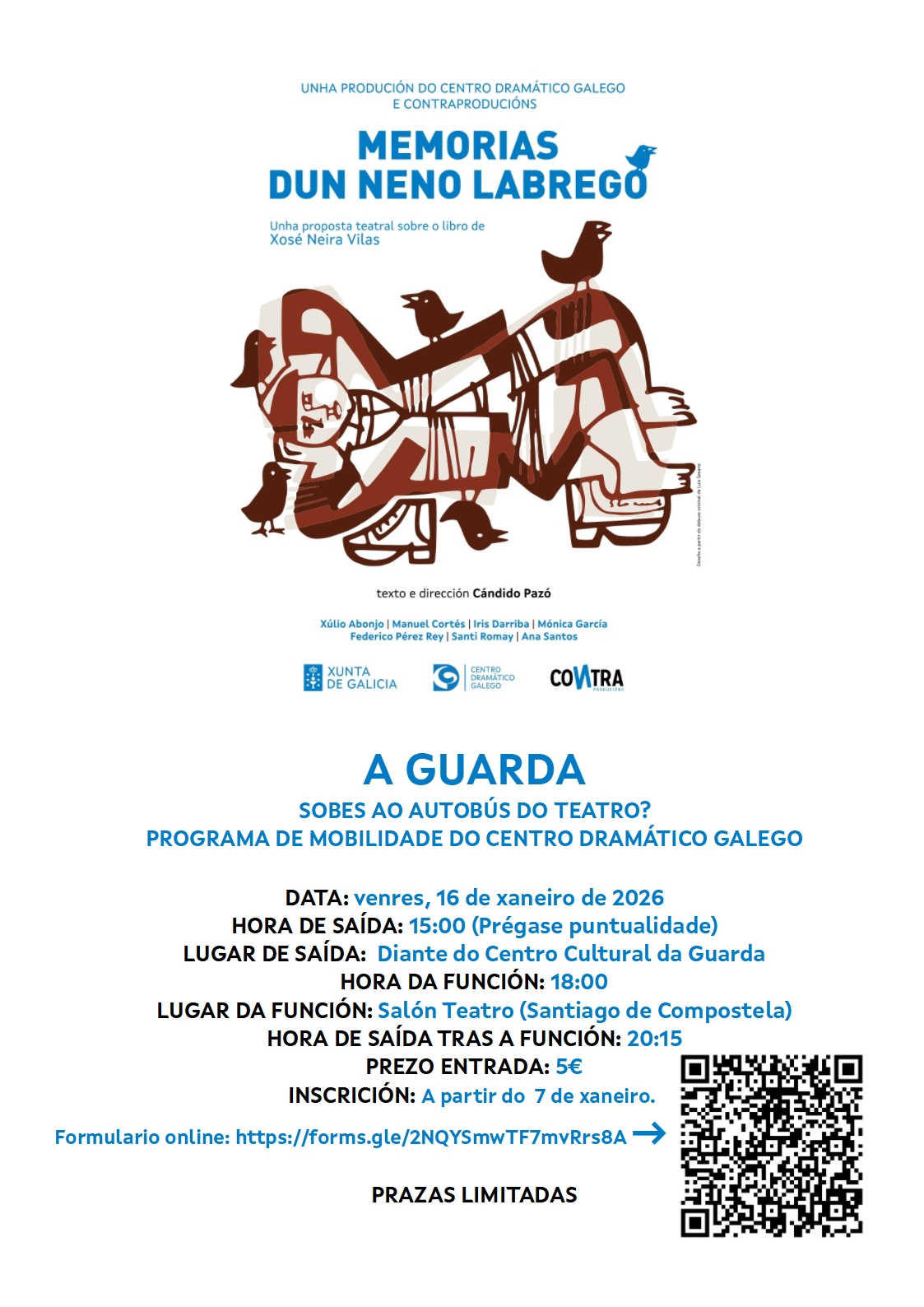 O próximo venres 16 de xaneiro será a primeira saída do bus do teatro desde A Guarda. A obra a ver será “Memorias dun neno labrego”.