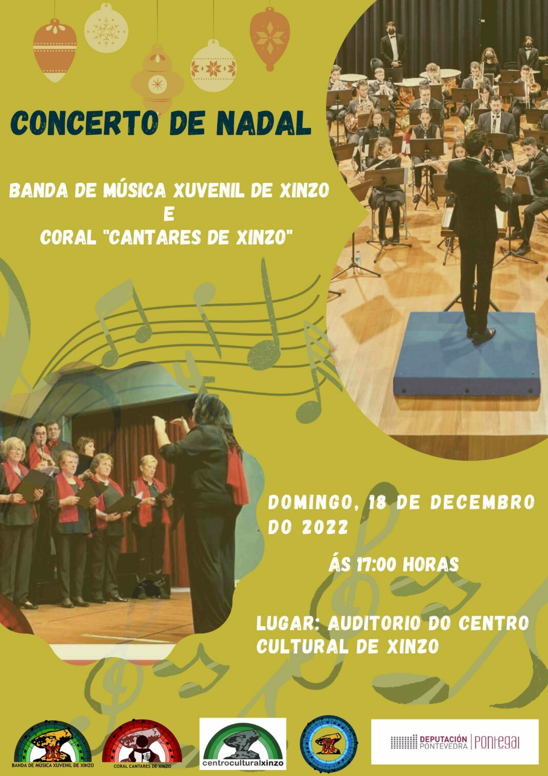 Ao día seguinte, o domingo 18 de decembro, será o turno da Banda de Música e a Coral Cantares. Ambas agrupacións volven xuntarse tras o exitoso concerto en honra a Santa Icía que tivo lugar fai unhas semanas, esta vez para celebrar a Navidade e o Fin de Ano. Este concerto dividirase en dúas partes, unha primeira na que actuará a Coral y unha segunda na que o fará a Banda, e tendrá lugar ás 17:00h, tamén no auditorio do Centro Cultural de Xinzo.