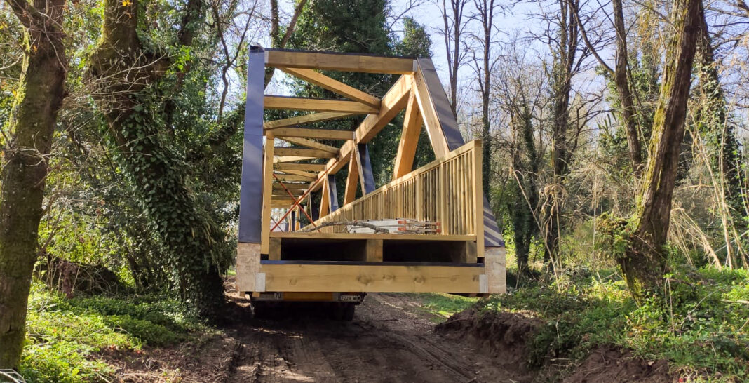 A comezos da próxima semana colocarase a ponte peonil de madeira que unirá ás dúas beiras do río Louro na súa desembocadura. A estrutura chegaba onte a Tui nun transporte especial que precisou dun operativo especial de tráfico debido ás súas grandes dimensións.