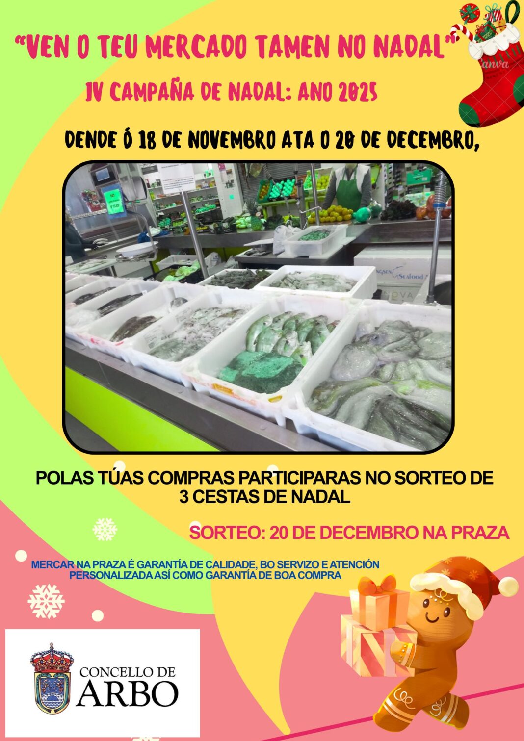 O Ayuntaamento de Arbo, en colaboración cos comerciantes da Praza de Abastos, lanzou por cuarto ano consecutivo a tradicional campaña “Ven O teu Mercado Tamén no Nadal”.