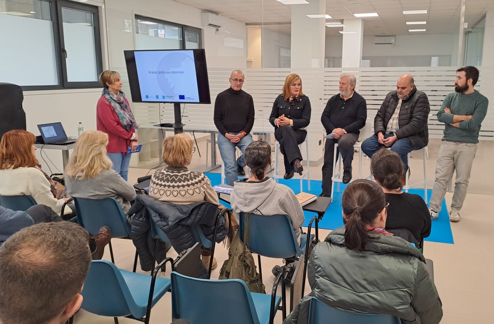 A Confraría San Xoán de Redondela e o Círculo Cultural de Chapela explicaron os seus respectivos proxectos, que recibiron fondos en anteriores convocatorias. No caso da Confraría a bióloga e técnica Beatriz Crespo explicou que fixeron unha aposta ecolóxica e sostible e recibiron financiamento para un vehículo 100% eléctrico e cero emisións co que comercializarán e distribuirán produtos do mar de Redondela. Emilio Sánchez, presidente do Círculo, expuxo o seu proxecto “Muller, cultura e mar” para dar a coñecer a cultura propia da contorna, fomentar o deporte náutico, adaptar instalacións e mellorar a eficiencia enerxética.