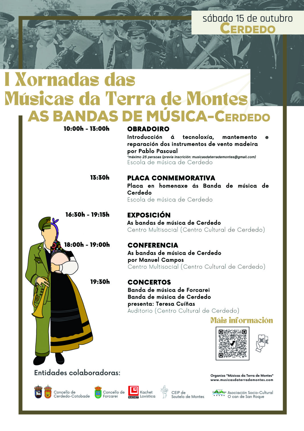 Entre as 18 e as 19 horas, no Centro Multisocial (Centro Cultural de Cerdedo) terá lugar a conferencia “As Bandas de Música de Cerdedo”, impartida por Manuel Campos.