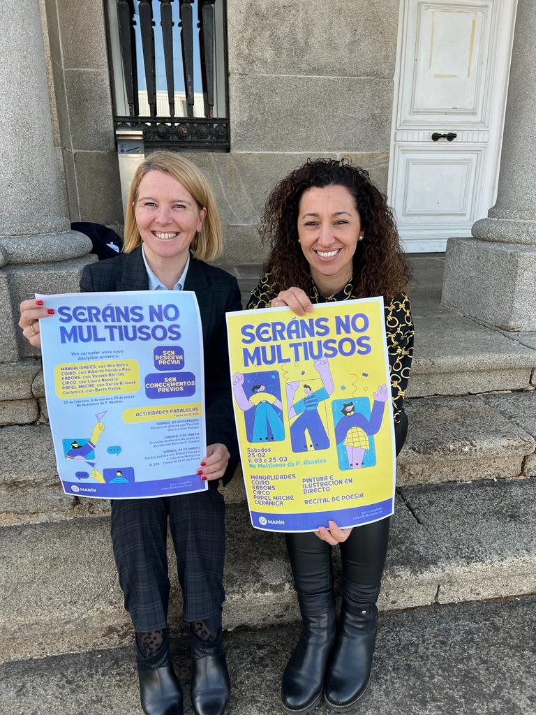 A mocidade de Marín xa ten plan para as fins de semana que veñen despois do Entroido. As concelleiras de Festas e de Cultura, Marián Sanmartín e Beatriz Rodríguez, presentaron esta mañá o programa “Seráns no Multiusos”, unha proposta de ocio e de cultura coa que os mozos e mozas de Marín poderán pasalo ben nas veladas de febreiro e marzo, á par que aprenden unha nova disciplina artística.