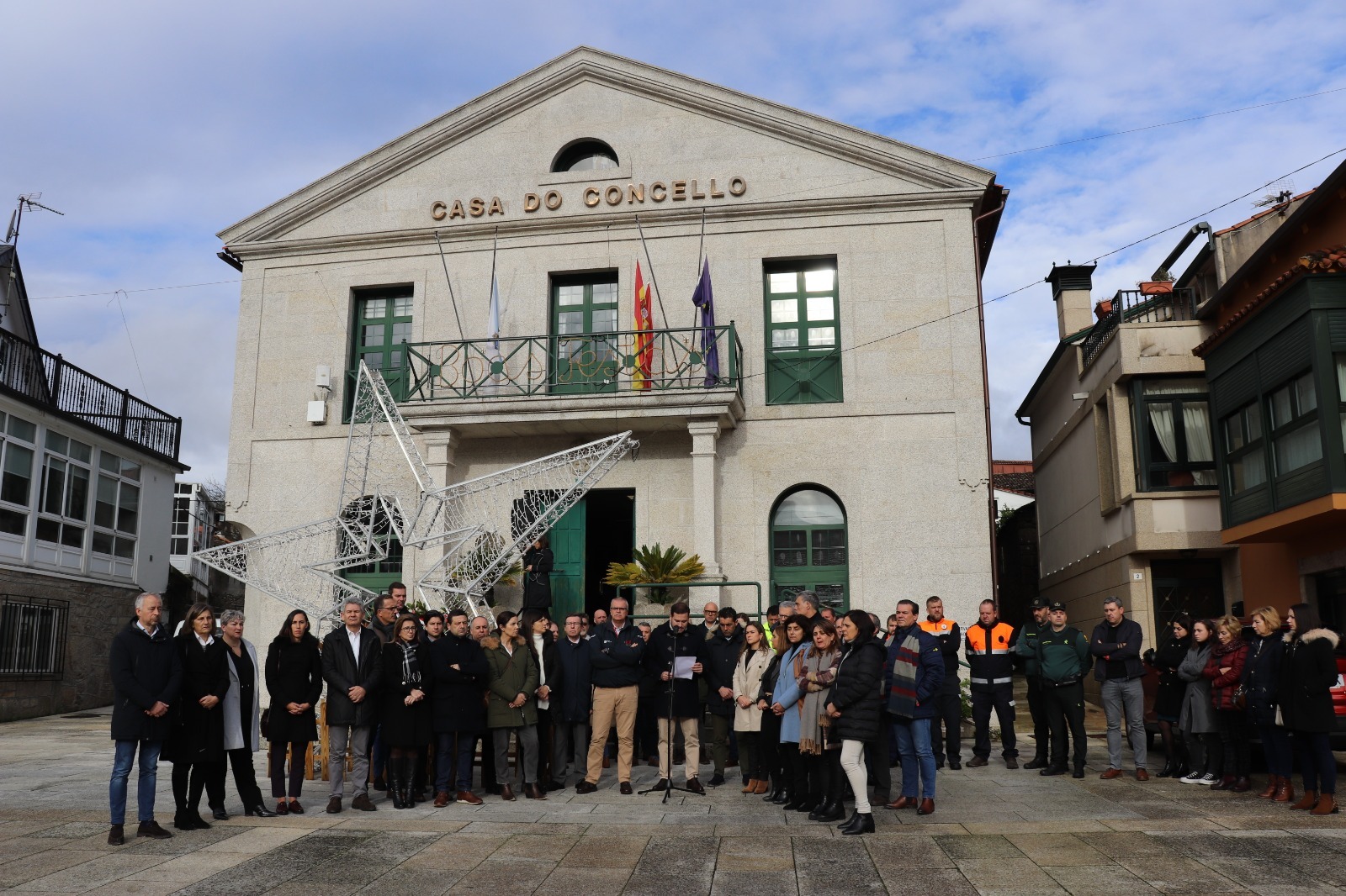 O alcalde, Jorge Cubela, confirmou o rescate da sétima vítima mortal do sinistro e procedeu a agradecer aos asistentes a súa presenza. Asimismo, moi emocionado, deu lectura a un comunicado de pesar onde sinalaba que “estamos hoxe aquí para testemuñar a nosa dor e a nosa solidariedade con esas familias que sufriron a fatalidade de perder nunhas datas tan sinaladas como estas aos seus seres queridos dun xeito inxusto e totalmente inesperado. Unímonos aquí todos nós, neste acto cívico, nun sentimento, un exercizo de humanidade e consternación colectiva para axudar a facer fronte ao abatimento que sufren estas familias e ás que lles queremos transmitir e testemuñar, hoxe máis que nunca, o noso arroupo e a nosa empatía ante unha traxedia destas magnitudes”.