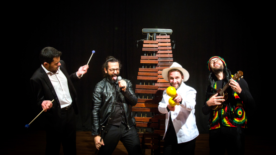 A obra conta como catro músicos descoñecidos e de estilos moi diferentes chegan ao escenario sen os seus instrumentos e descobren un pasado común e o seu gusto polas músicas que fusionan estilos gracias a un divertido exercicio de virtuosismo cunha marimba.