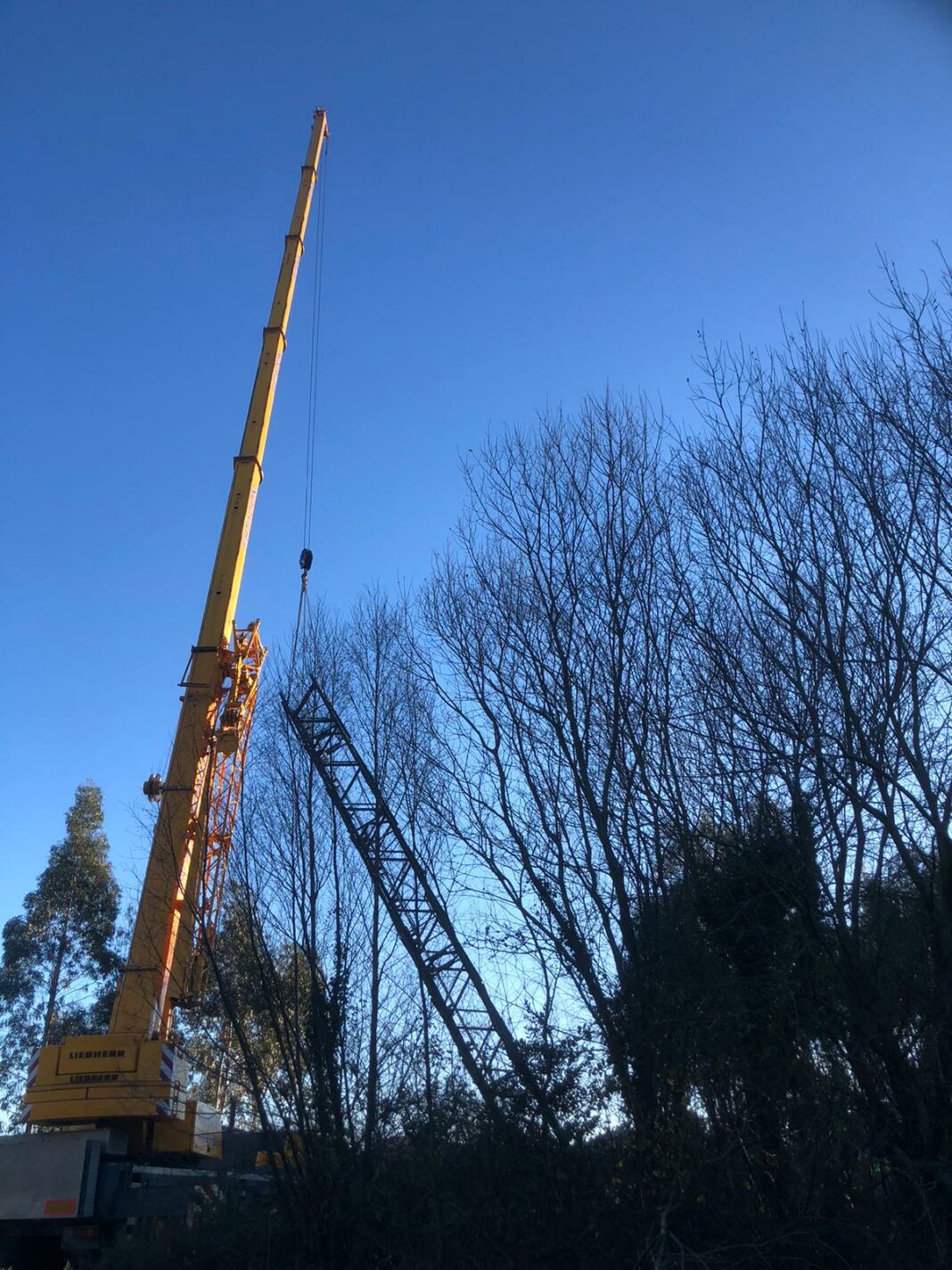 No pasado mes de outubro logrouse chegar cun camión formigoneira para preparar a base da torre onde ao longo do día de hoxe se está a proceder ao izado en ensablaxe da estrutura metálica que permanecía deste entón tirada no chan.