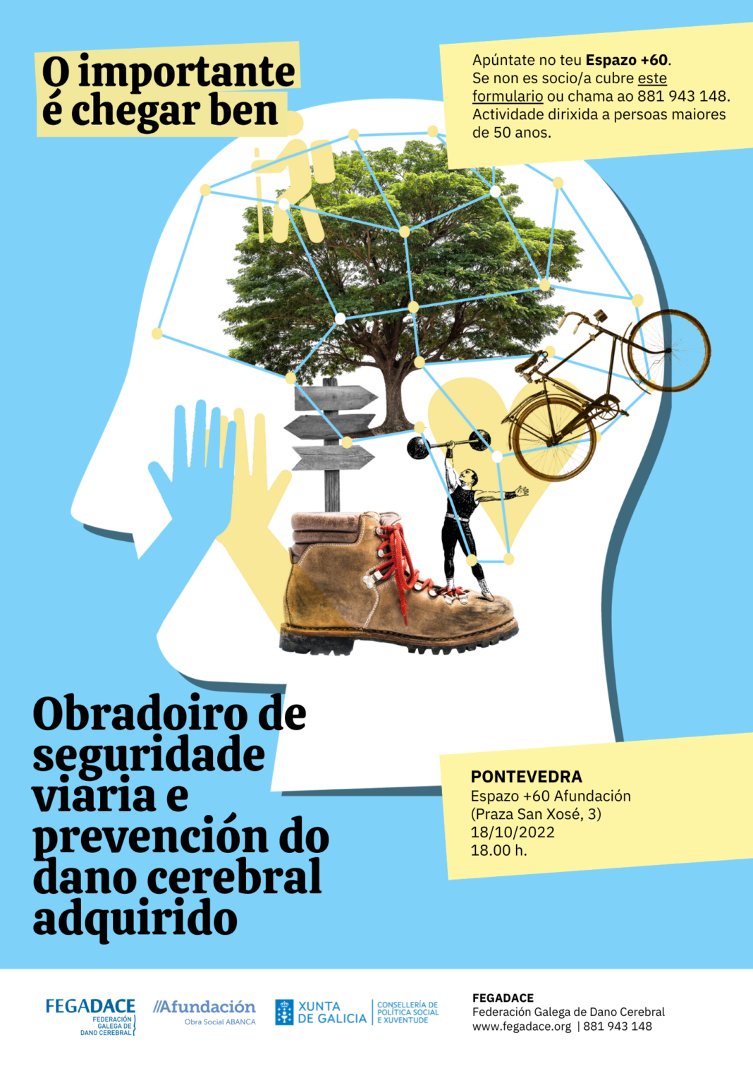 Así, FEGADACE presenta un proxecto de colaboración cos Espazos +60 de Afundación en forma de ciclo de obradoiros de seguridade viaria e prevención do dano cerebral adquirido. A sesión informativa de Pontevedra vai ter lugar mañá martes, día 18 de outubro, a partir das 18:00, no Espazo +60 de Pontevedra (Praza San Xosé, 3).