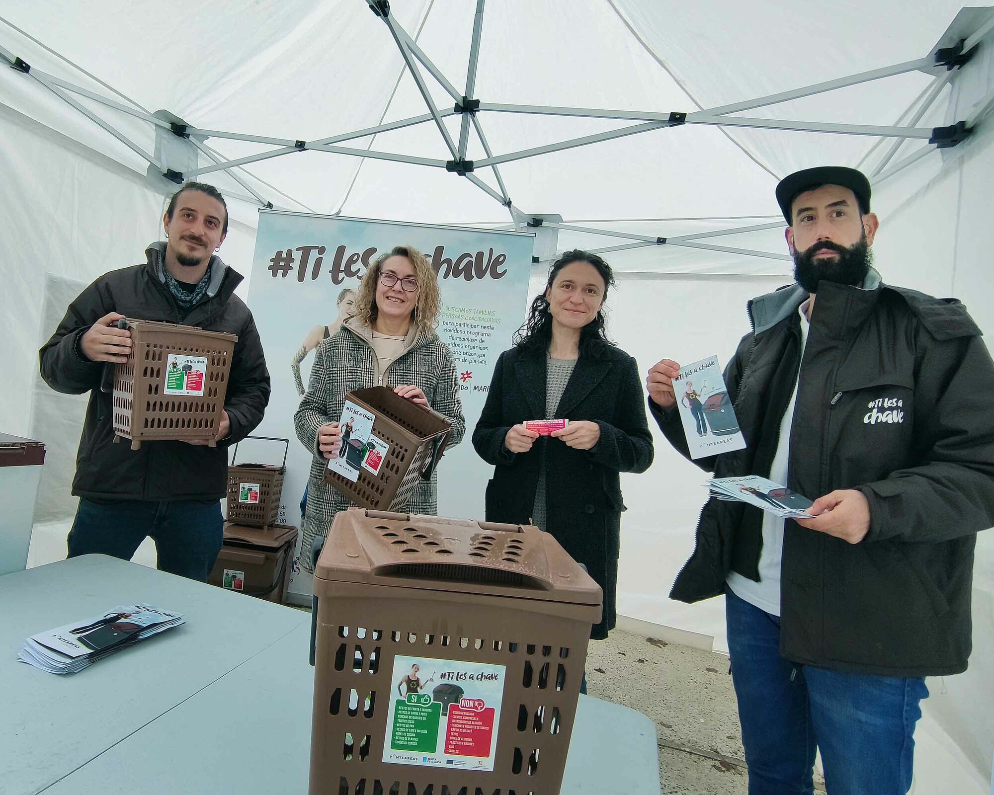 Ponteareas quere comezar a facer unha correcta xestión dos biorresiduos. Baixo o lema ‘Ti tes a chave’, o Concello puxo en marcha na Praza de Bugallal unha campaña de divulgación do proxecto piloto de recollida de biorresiduos no centro da vila que tivo unha grande acollida por parte da veciñanza, que se achegou ata a carpa para informarse e amosou o seu interese por comezar a participar de forma activa.