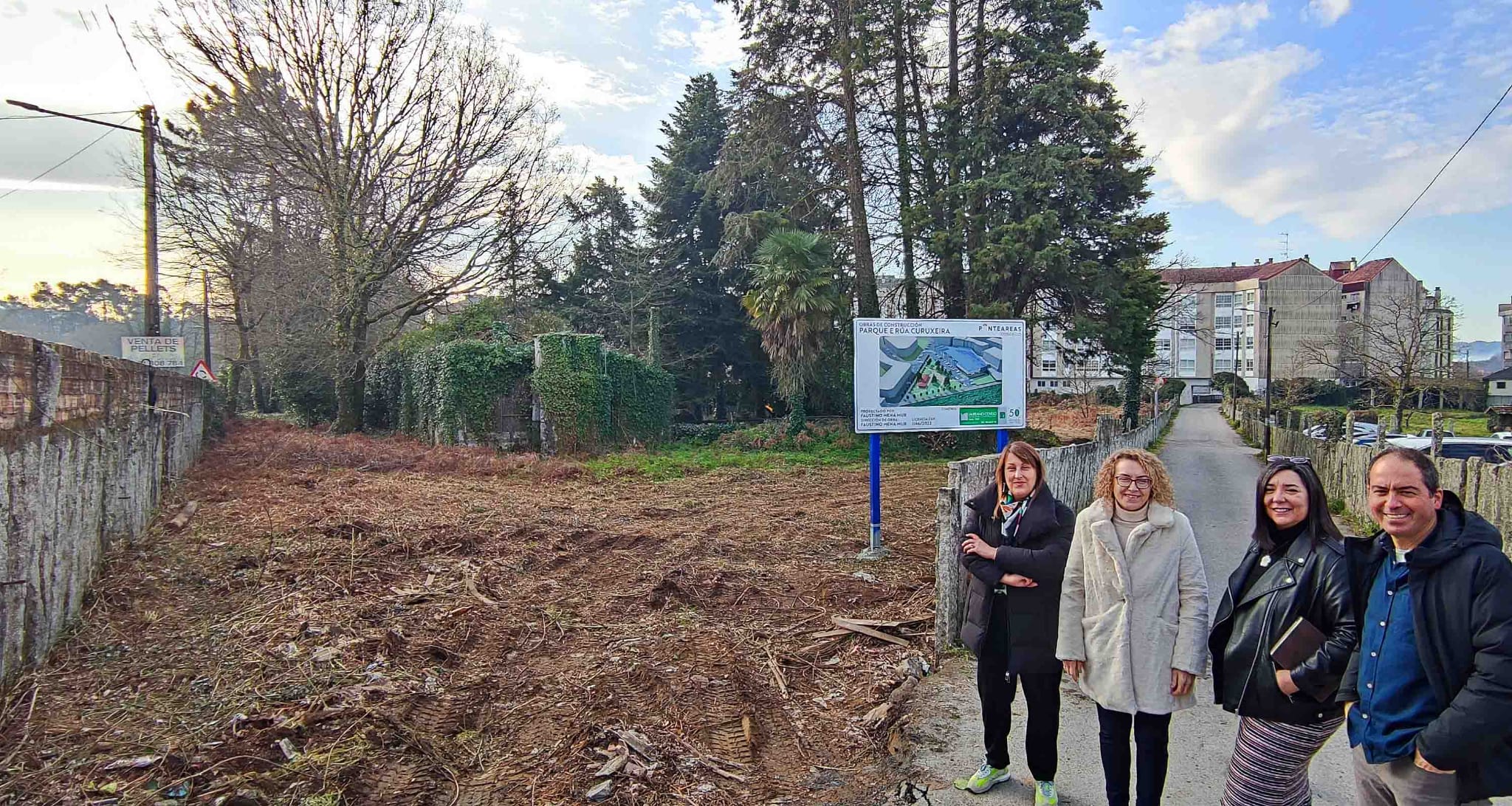 A alcaldesa de Ponteareas, Cristina Fernández; o primeiro e segunda tenente de alcaldesa, Roberto Mera e Chus Garrote; e a concelleira de Promoción Económica, Eva Gil, visitaron as obras do futuro parque, que terá preto de 3.000 metros cadrados. A rexedora salientou que esta actuación “é un exemplo da planificación e rigor co que actúa o goberno municipal. Anunciamos o pasado ano que se faría o parque e xa están as obras en marcha para finalizalas en aproximadamente dous meses”. A segunda tenenta de alcaldesa, Chus Garrote salientou que “as obras non teñen ningún custo para o Concello grazas á aprobación do PXOM, que logramos tras 20 anos de parálise”.