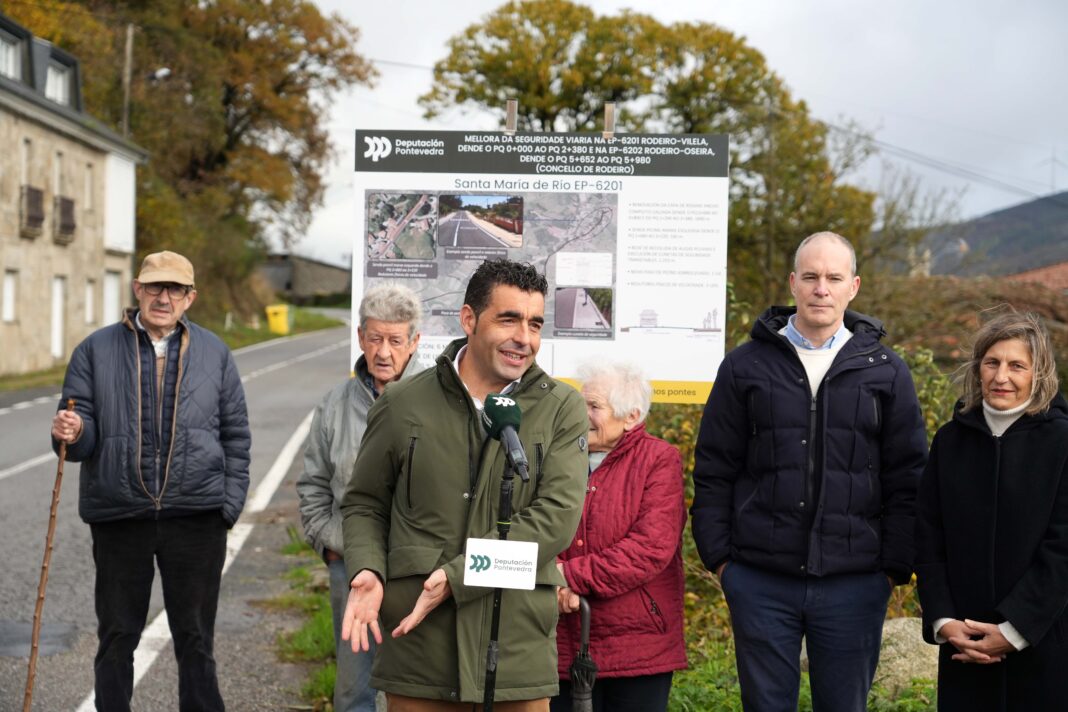 O presidente da Deputación de Pontevedra, Luis López, anuncia un investimento de máis de medio millón de euros para a mellora da seguridade viaria e mobilidade peonil en dúas estradas de titularidade provincial ao seu paso por Rodeiro. Dúas actuacións coas que o goberno de Luis López atende unha histórica demanda veciñal ao renovar o firme e implantar itinerarios peonís en dous treitos da EP-6201, entre Rodeiro e Santa María de Río; e da EP-6202, en San Martiño de Asperelo. Trátase dun proxecto que é desde hai anos obxecto dunha reclamación veciñal e que agora a Deputación atende. “Era un perigo e lle imos poñer solución”, asegurou o dirixente nunha visita a estas dúas parroquias na que estivo acompañado pola deputada de Infraestruturas, Belén Cachafeiro.
