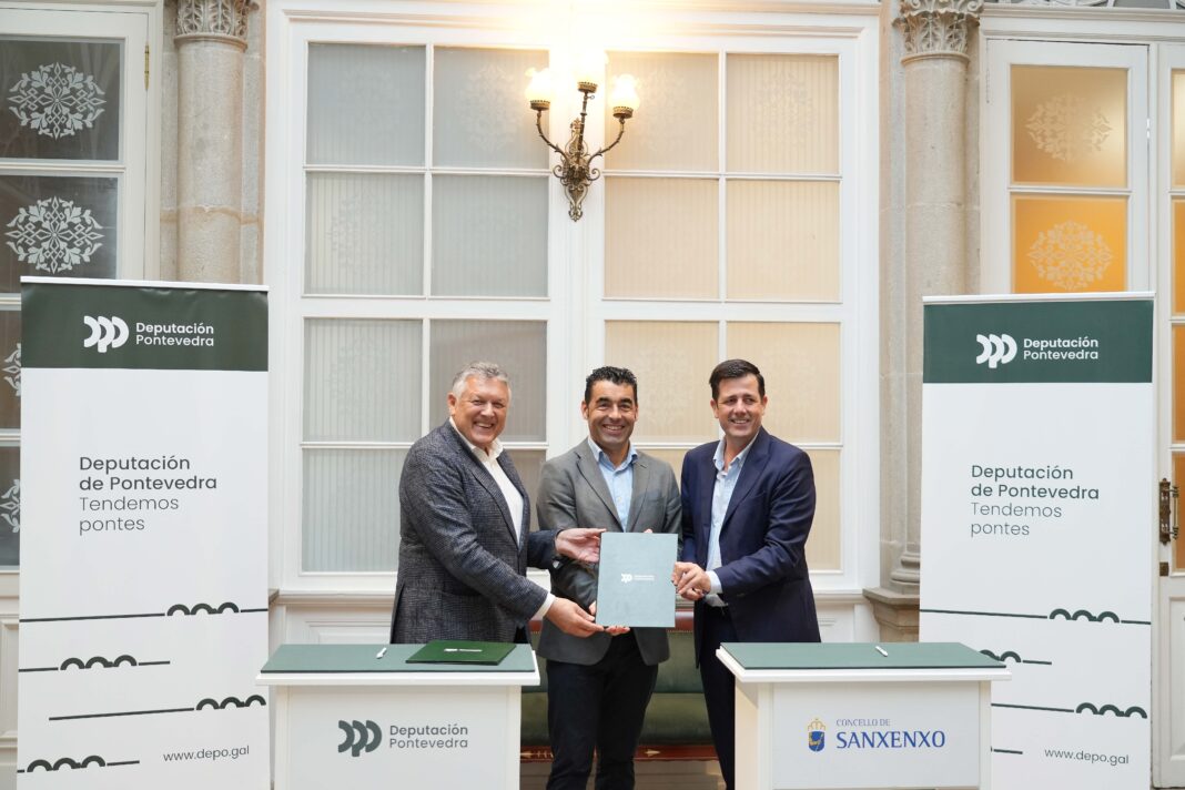 O presidente da Deputación de Pontevedra, Luis López, vén de asinar o convenio de colaboración co alcalde de Sanxenxo, Telmo Martín, para a reforma do edificio Multiusos de Portonovo. Un acordo asinado no marco do Plan Extra, o novidoso plan de investimentos do goberno provincial que mobiliza ata 38 millóns de euros entre os concellos de menos de 50.000 habitantes da provincia para executar proxectos estratéxicos. No Pazo provincial, López e Martín selaron un acordo a través do cal o organismo provincial achega 900.000 euros para financiar unha obra valorada en 1,25 millóns de euros, da que o Concello aporta os 357.600 euros restantes. Un apoio que, segundo sinalou o mandatario provincial, permitirá mellorar a mobilidade peonil e a seguridade viaria nunha estrada moi transitada por condutores e peóns. “Vai ser clave á hora de proporcionar servizos municipais e acoller espazos para a veciñanza de Sanxenxo”, salientou o mandatario provincial, que estivo acompañado polo deputado e concelleiro de Sanxenxo, Marcos Guisasola.