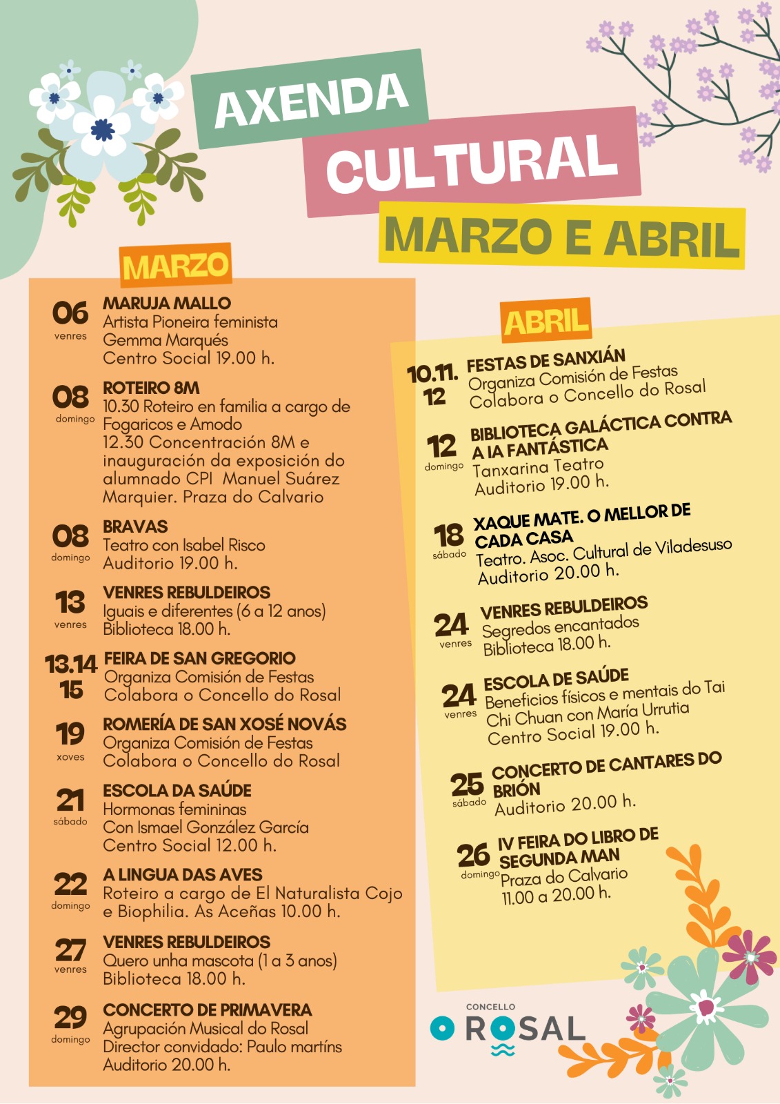 A primavera no Rosal, vívese, celébrase e compártese. O Concello presenta unha completa axenda cultural e de lecer con máis de medio cento de horas de actividades pensadas para todos os públicos, unha programación que converterá o municipio nun punto de encontro para a cultura, a tradición, a saúde e a convivencia veciñal.