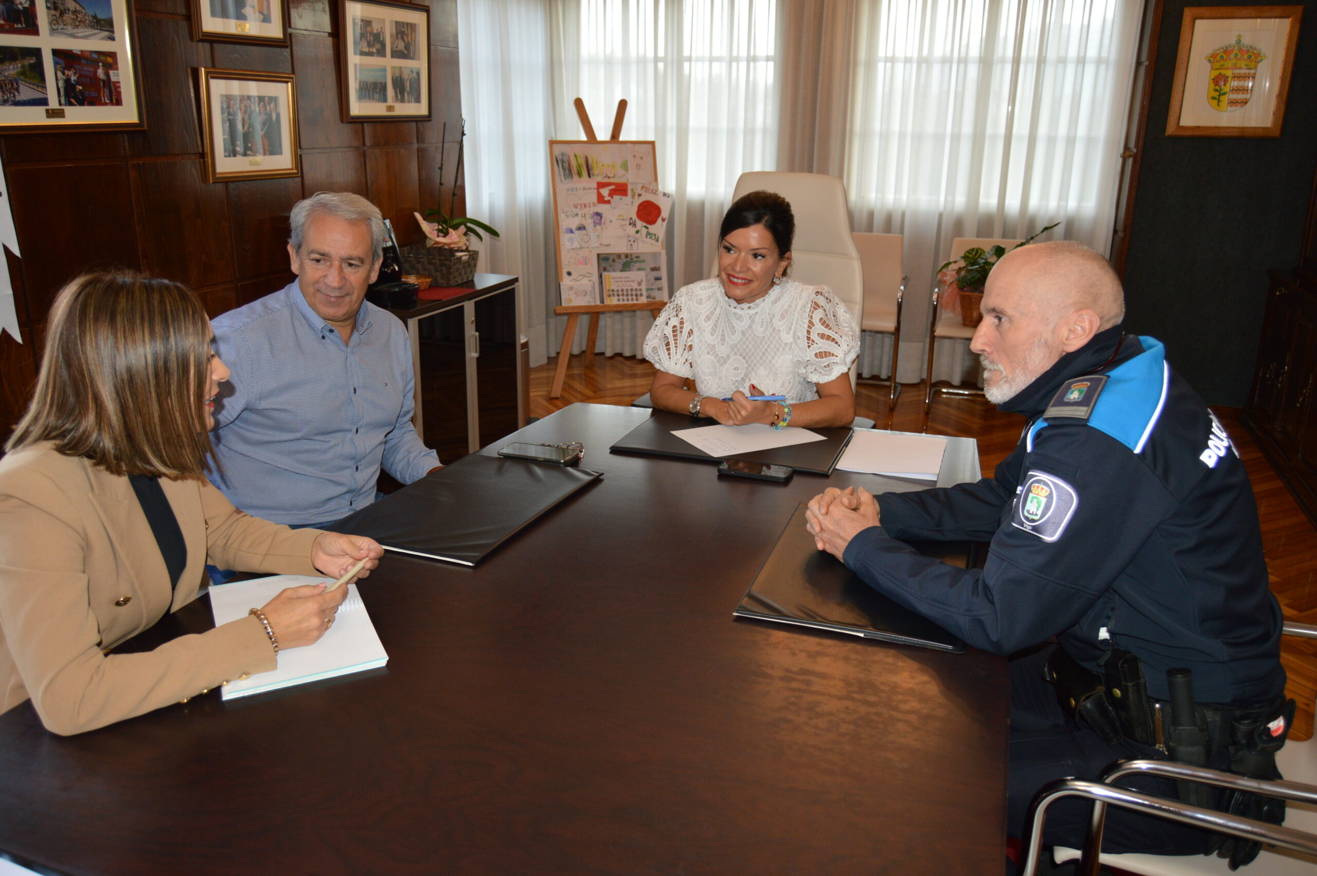 A alcaldesa de Mos, Nidia Arévalo, a concelleira de Política Social e Igualdade, Sara Cebreiro, e o edil de Deportes, José Areal, reuníronse esta mañá no salón de sesións do Concello co presidente da Asociación Discamino, Javier Pitillas, para abordar un futuro convenio coa entidade, que permita ás persoas con discapacidade do municipio, participar en actividades organizadas por Discamino.