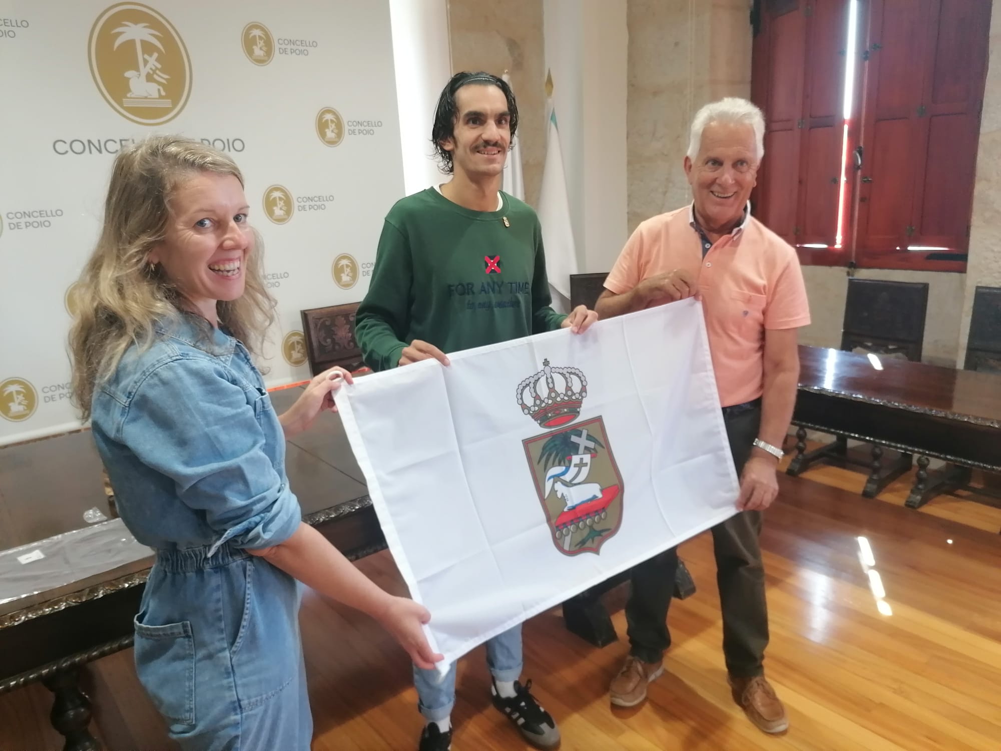 O alcalde de Poio, Luciano Sobral, acompañado pola titular de Deportes, a nacionalista Marga Caldas, recibiu na mañá deste luns na Casa Consistorial a Cristian Fernández Nieto, actual subcampión de Europa de acuatlón, logo da medalla de prata obtida na competición continental celebrada a finais do pasado mes de setembro en Euskadi. Fernández Nieto recibiu de mans do rexedor e da concelleira do Goberno local unha bandeira de Poio, ademais dunha insignia do Concello e de varios obsequios.