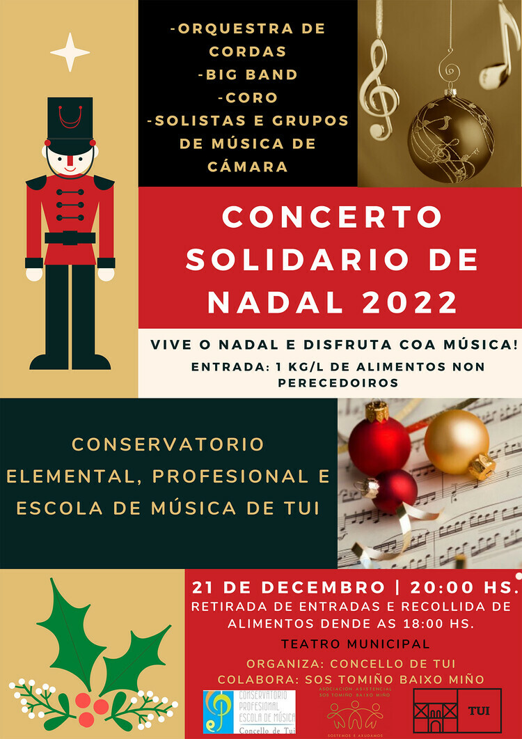 Solistas, grupos de música de cámara, o grupo de alumnos e alumnas de 5 e 6 anos de música e movemento, o Coro do Grao Profesional, a Big Band do Grao Profesional e Orquestra de corda do Grao Profesional e Elemental, pasarán polo escenario do Teatro Municipal de Tu ofrecendo un variado repertorio no que non faltarán os temas propios destas datas.