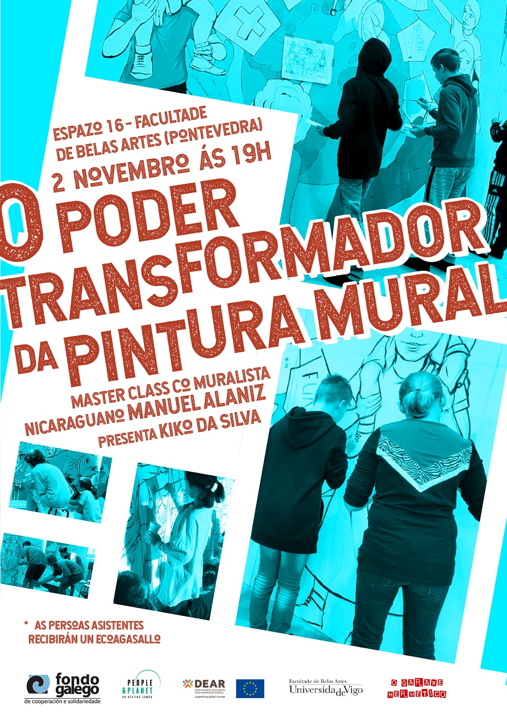 O muralista nicaraguano Manuel Alaníz ofrecerá este mércores 2 de novembro unha master class aberta ao público na Facultade de Belas Artes da Universidade de Vigo, ubicada no campus de Pontevedra. Kiko da Silva, ilustrador e monitor dos obradoiros de debuxo urbano do proxecto europeo People & Planet, será o encargado de presentar ao conferenciante, ás 19:00 horas no denominado ‘Espazo 16’. A charla, organizada polo Fondo Galego de Cooperación e Solidariedade, contará con tradución simultánea ao inglés e as persoas asistentes recibirán un ecoagasallo.