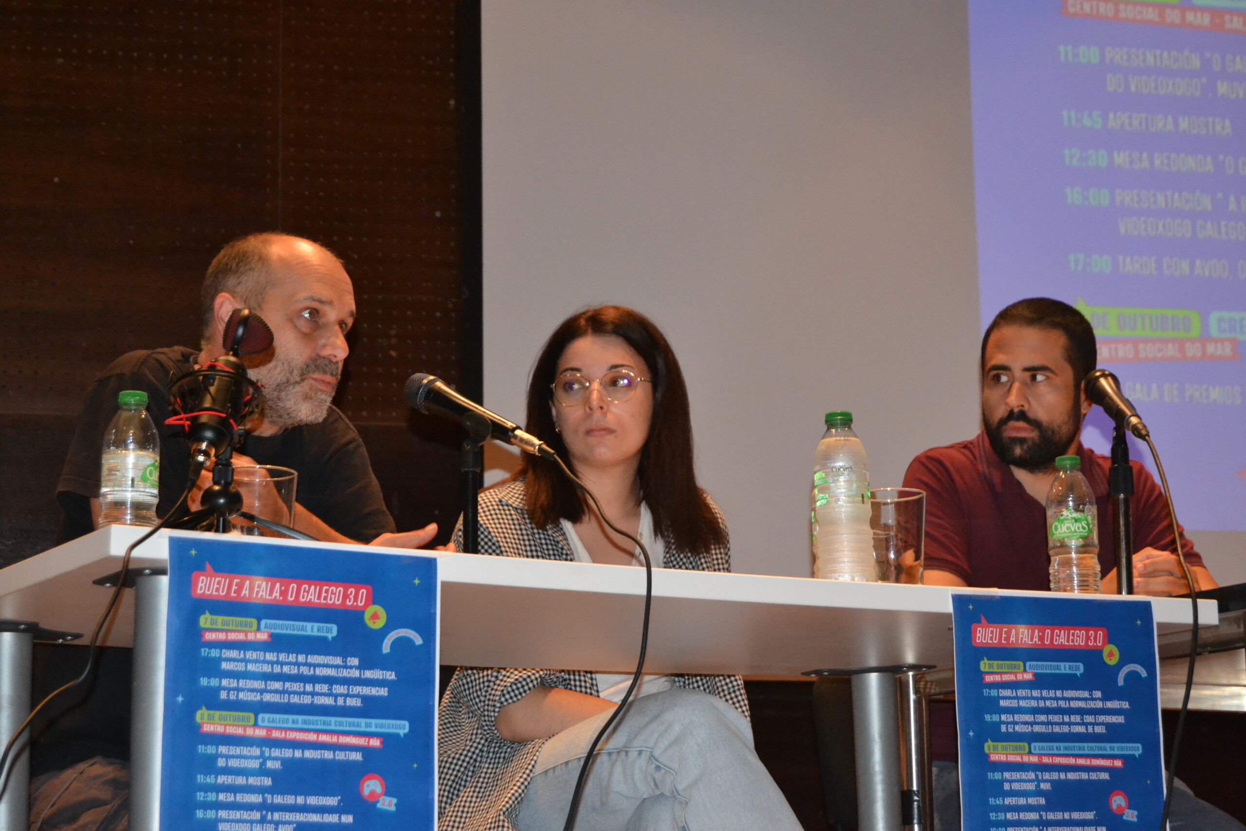 O programa arranxou o venres pola tarde no Centro Social do Mar con Marcos Maceira, presidente de A Mesa pola Normalización Lingüística, quen abordou as diversas campañas desta entidade para que o galego estea presente no audiovisual, tanto nas grandes plataformas como a través da canle Xabarín. A continuación, celebrouse unha mesa redonda na que participaron as persoas fundadoras de varios proxectos exitosos na rede, caso de Carmen García, de Xornal de Bueu, Borxa Castro, de Orgullo Galego e Daniel González, de Gz Música, para falar sobre as orixes e as dinámicas de futuro, demostrando que o galego é unha lingua con moito potencial, pero tamén das dificultades atopadas no día a día.