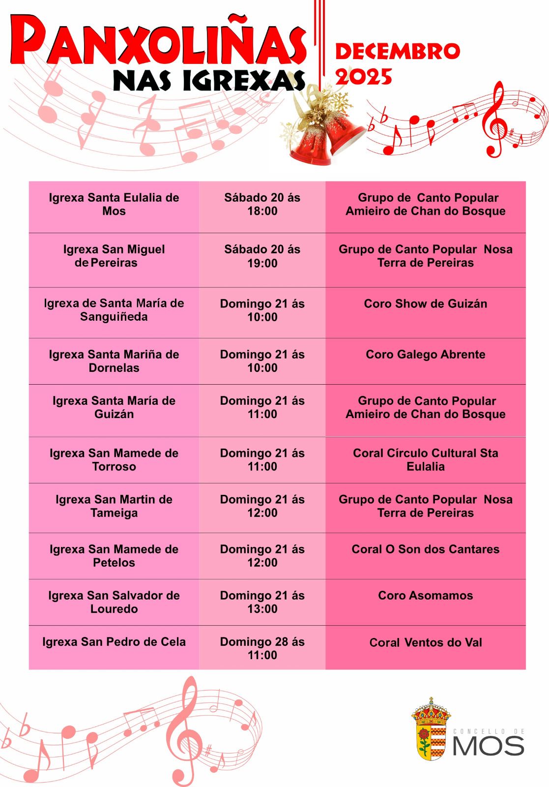 O Concello de Mos organiza durante este mes de decembro o ciclo “Panxoliñas nas igrexas”, unha iniciativa cultural que enche de música e tradición os templos das distintas parroquias do municipio coincidindo co Nadal.