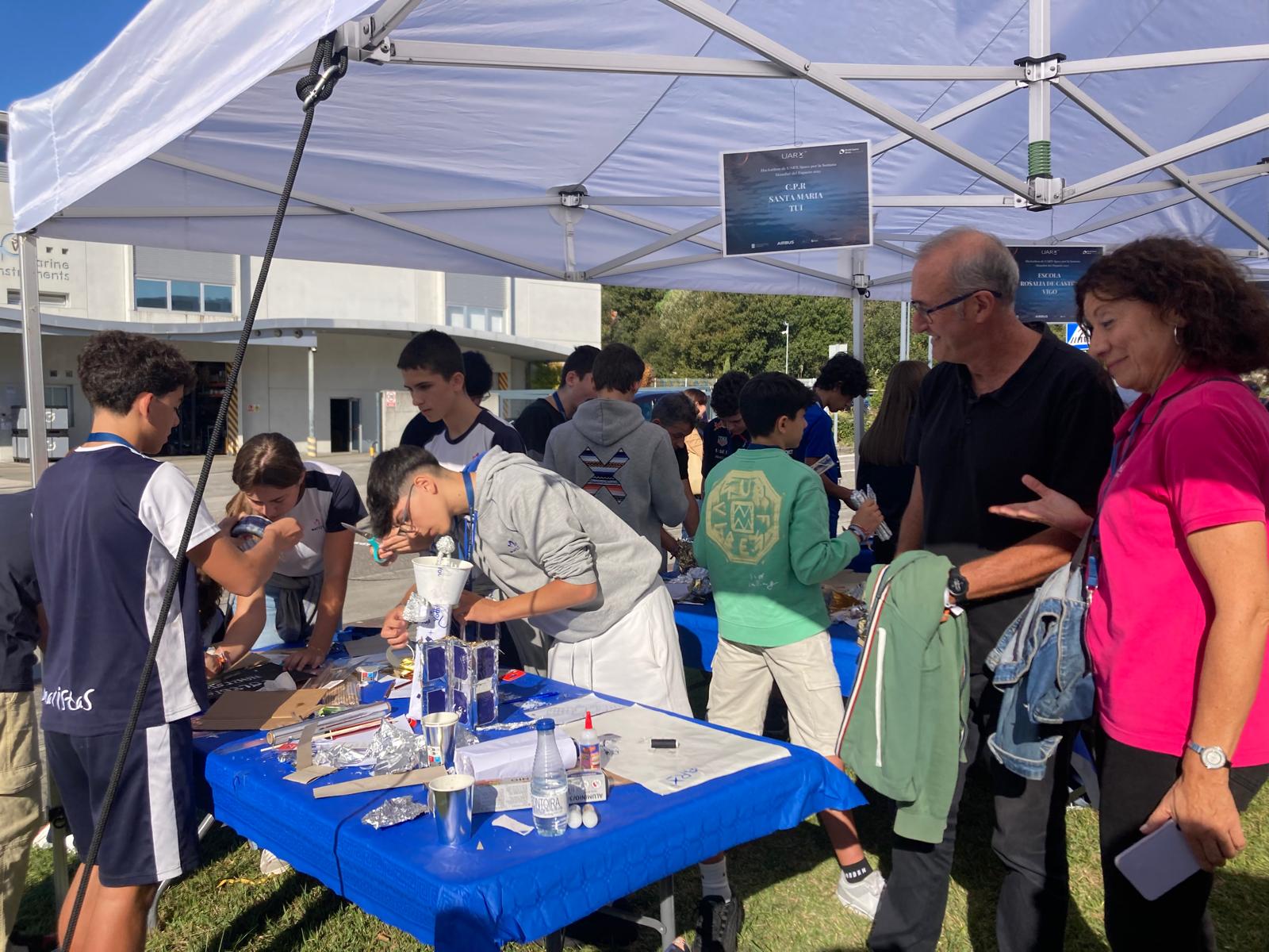O Concello de Nigrán celebrou esta mañá a ‘Semana Mundial do Espazo’ colaborando cunha novidosa iniciativa educativa de UARX SPACE no exterior da súa sede. A empresa radicada en Porto do Molle, única en España en proveer servizos de transporte en órbita para pequenos satélites, organizou unha competición entre sete colexios de toda a comarca (os que se inscribiron) por acadar o mellor deseño dun satélite en tempo récord e fabricado só cos materiais achegados pola organización (idénticos para cada centro).