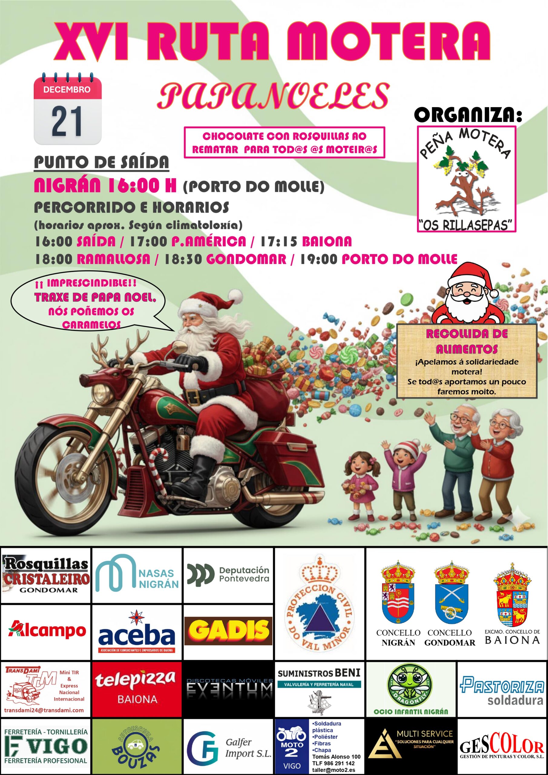 O Concello de Nigrán, xunto ao de Baiona e Gondomar, colabora coa Peña Moteira ‘Os Rillasepas’ organizando este domingo 21 de decembro a XVI Ruta Moteira de Papanoeles, que terá inicio e fin en Nigrán.