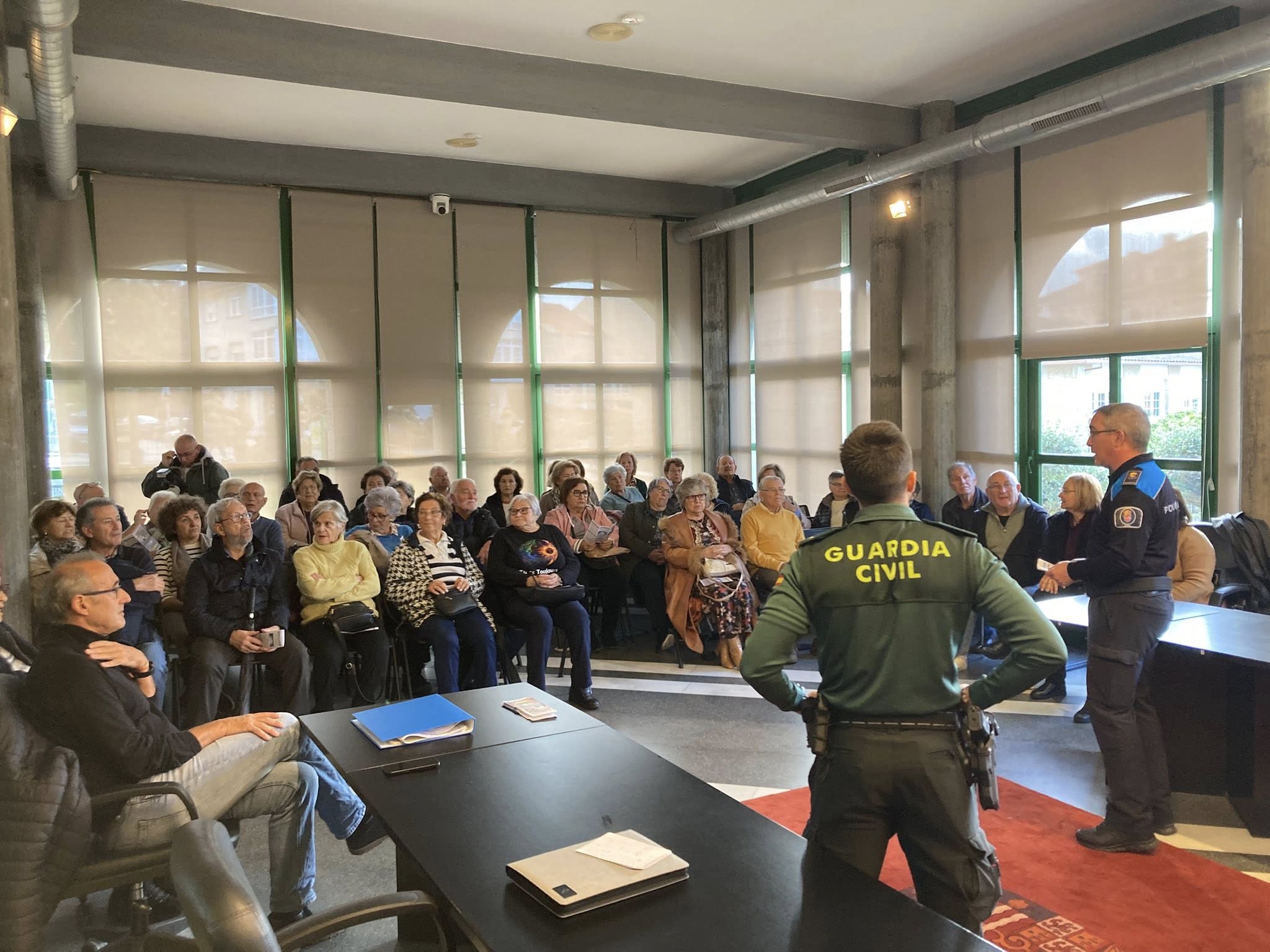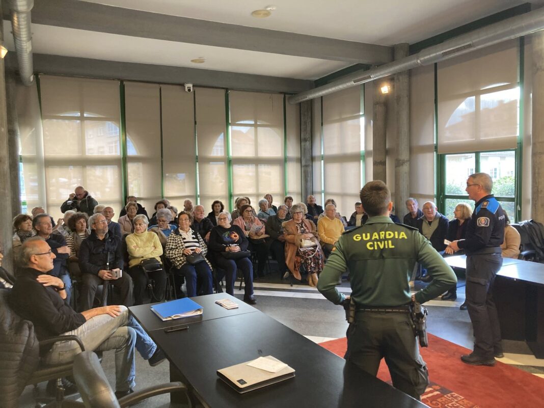 Os asistentes recibiron consellos prácticos para que incorporen ao seu día a día e previr así posibles delitos de estafas por internet, sustracións pola rúa, identificación das claves das tarxetas no caixeiro… As persoas maiores son unha poboación especialmente vulnerable, xa que os delicuentes aproveitan as súas condicións psicofísicas para actuar, polo que esta charla resultou especialmente interesante para evitar determinadas situacións que se poden producir no domicilio, por internet ou na rúa.