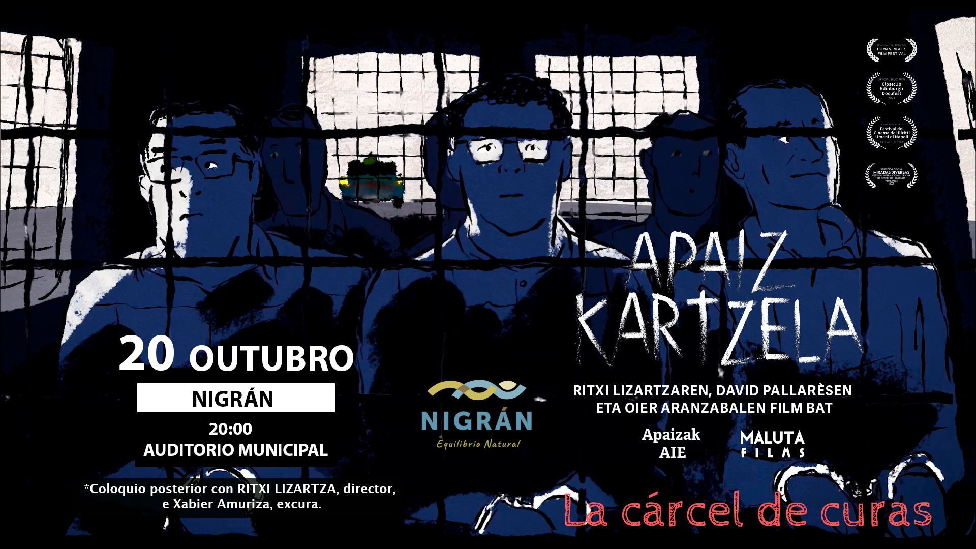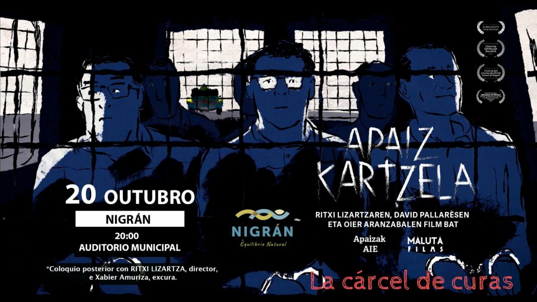 Nigrán, 17/10/22.- O Concello de Nigrán ofrece este xoves 20 de Outubro ás 20:00 horas no Auditorio Municipal a proxección do documental vasco ‘La cárcel de curas’ coa presenza do seu director Ritxi Lizartza e os ex-curas condeados Xabier Amuriza, Juan Mª Arregi e Anxo Currás, cos que o público poderá establecer un coloquio posterior. O acto encádrase na programación do ‘Mes da Memoria’ do Concello de Nigrán e supón prácticamente a estrea en toda Galicia (o mércores 19 estará en Catoira, o xoves 20 en Nigrán e o venres 21 en Baiona). A entrada é de balde ata completarse o aforo.