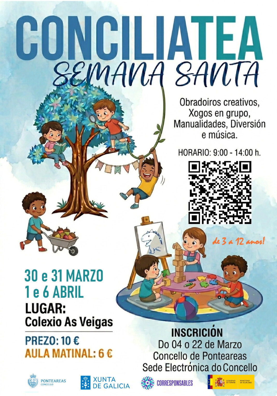 O Concello de Ponteareas informa ás familias de que xa está aberto o prazo para presentar a inscrición no programa ConciliaTea Semana Santa 2026, unha iniciativa dirixida a facilitar a conciliación da vida familiar e laboral durante o período das vacacións escolares.