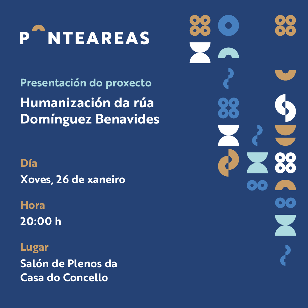 O Concello de Ponteareas vén de convocar a toda a veciñanza da rúa Domínguez Benavides e rúas próximas, como Paseo Matutino ou Castañal, a unha reunión este xoves 26 de xaneiro ás 20:00 no salón de plenos da Casa Consistorial para presentar o proxecto de humanización da rúa. Ademais das e dos residentes están tamén convocados os pais e nais dos nenos e nenas da Escola Infantil e o Consello da Infancia, xa que na rúa Domínguez Benavides sitúase a Escola Infantil Municipal.