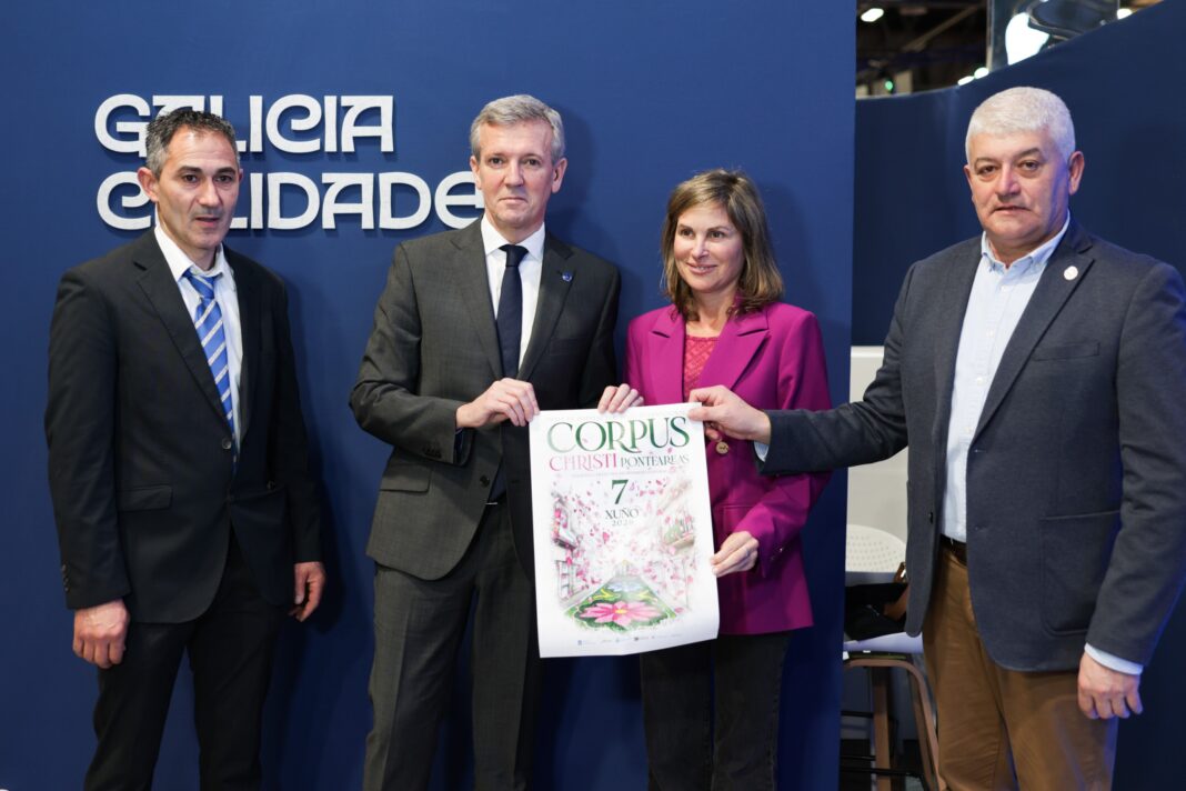 O Concello de Ponteareas presentou na Feira Internacional de Turismo (FITUR) o cartel anunciador do Corpus Christi 2026, unha das celebracións máis emblemáticas da vila e referente cultural a nivel internacional, e o cartel do Festival Groba, que durante unha semana ofrece a oportunidade de escoitar música clásica interpretada por recoñecidos músicos de todo o mundo.